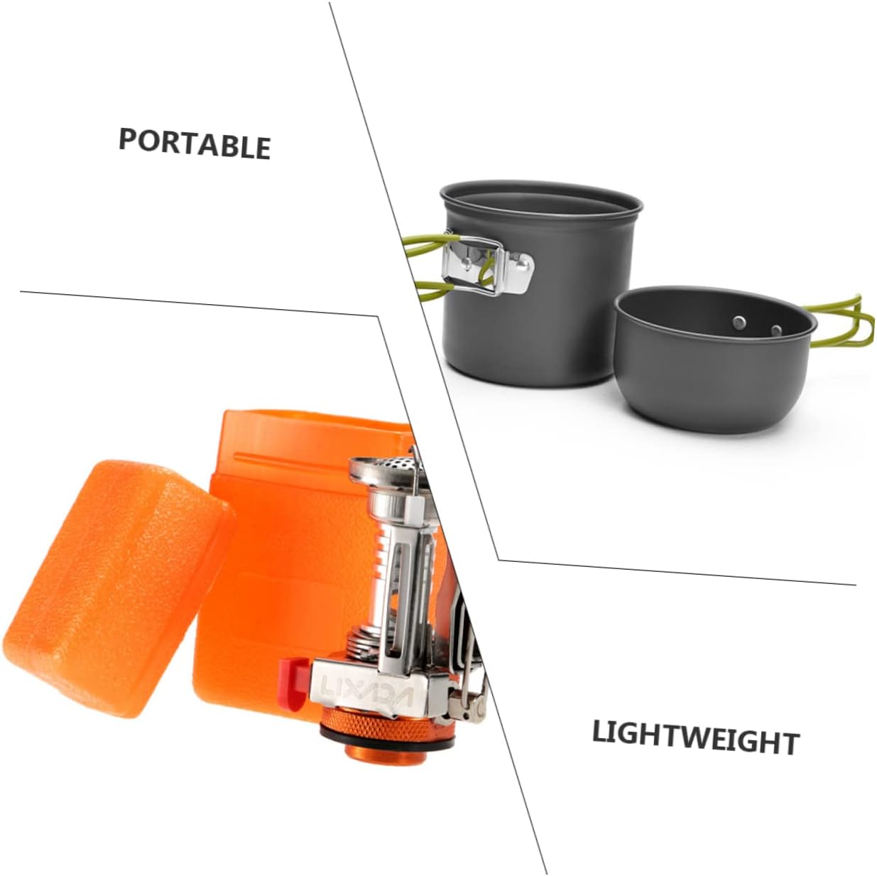 Package List 1 x furnace 1 x tank bracket 1 x cutter 1 x fork 1 x spoon 1 x fiber cloth 2 x cup 1 x cauldron 1 x small pot 2 x storage bag Features -Size: About 16.00X12.00X12.00cm/6.29X4.72X4.72incgh camping pots -Color: Assorted Color camping tool -Material: Aluminium alloy, stainless steel camping cookware - for picnic, camping, hiking and other outdoor activities portable cutlery. - Lightweight and folding design, easy to store and carry to travel anywhere aluminum alloy cookware. - Fine workmanship and beautiful appearance ensure its popularity camping utensils. - material, durable for use camping cookware kit. - A set of outdoor cooking ware can meet your essential demands.Goods Descriptionportable cutlery A great present choice for friends who love outdoor adventures.camping utensils material that can ensure its durability and practicability.camping cookware This item is a set of outdoor cookware, manufactured with , so that it can serve you for many years.aluminum alloy cookware It is for camping, hiking, mountaineering use