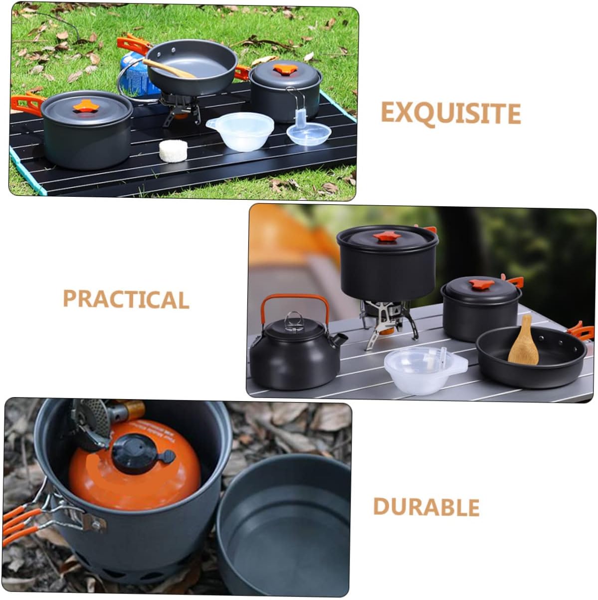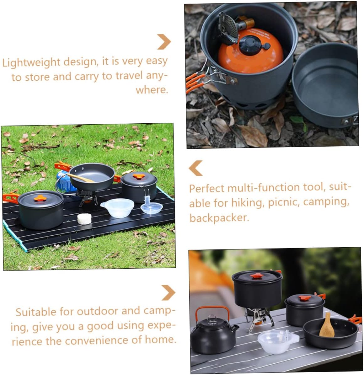 Package List 1 x Kettle 1 x Frying Pan 1 x Cooking Pan 3 x Plastic Bowls 1 x Spoon 1 x Shovel 1 x Loofah Cleaner 1 x Storage Bag Features - Size: About 17.00X17.00X9.00cm/6.68X6.68X3.54inch Portable Cooking - Color: Orange camping tool - Material: Aluminum, Plastic camping cook ware - Using non-stick camping cooking utensils, you can cook delicious food even in outdoor activities kettle for camping. - Suitable for outdoor and camping, give you a the convenience of home portable camping cookware. - Not easy to shake, convenient, , comfortable, , high in hardness, wear-resistant and camping cooking pot. - Lightweight design, it is very easy to store and carry to travel anywhere camping pots. - Perfect multi-function tool, suitable for hiking, picnic, camping, camping cook pot.Goods Descriptionportable camping cookware This item is an outdoor cookware kit, adoption of , and strong.camping griddle pan Easy to store and use and outdoors.camping cooking pan It is a time-saving cooking toolkit.camping utensil Suitable for camping, backpacking, picnics and other outdoor activities