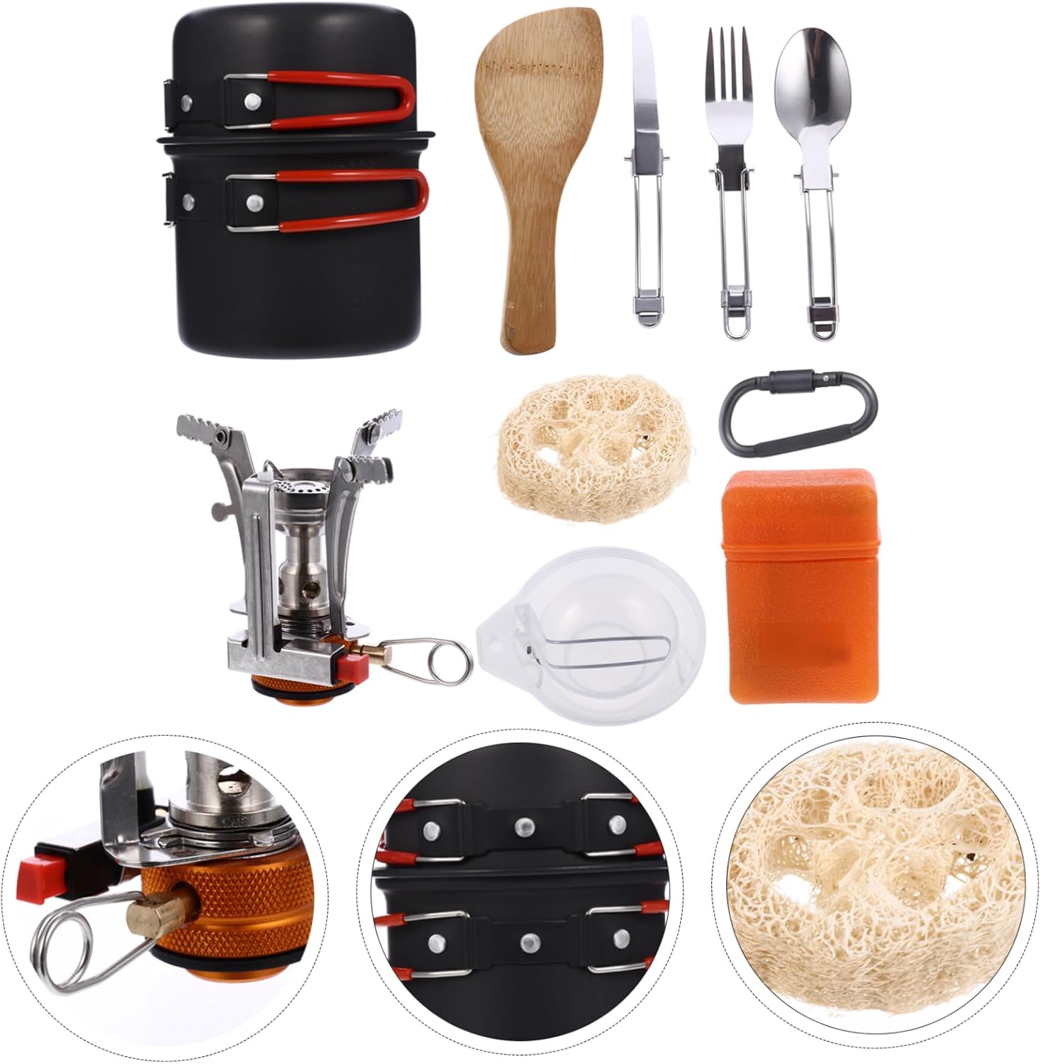 Package List 1 x Small 1 x Small bowl 1 x spoon 1 x cutter 1 x fork 1 x Furnace 1 x Small bowls 1 x and wood shovels 1 x Plastic spoon 1 x Cleaning ball 1 x Lock catch Characteristics -Spoon size:160*40mm/6.3x1.57in Multi-functional Cookware -Material:Aluminum alloy Mini Teapot Cooking Tool - size:165*12mm/6.5x0.47in Outdoor Cooking Kit -Color:Orange Stainless Steel Tableware -Lock catch size:7*8.1cm/2.76x3.19in Tableware for Camping -Fork size:160*12mm/6.3x0.47in -Small bowls size: Diameter: 11CM/4.33in, height: 4CM/1.57in -Small size: 122x105mm/0.87x4.13in - and wood shovels size:13*5cm/5.11x1.97in -Small bowl size: 115x60mm/4.53x2.36in -Furnace size:40x55x80mm/1.57x2.17x3.15in -Plastic spoon size: 16cm/6.2in diameter, 7.8cm/3.07, depth and 2cm/0.79 idepth - and for outdoor camping, hiking, climbing supplies outdoor Cup. -Crafted with material which can stand high temperature and weight Picnic Cookware. - Orange + white box Picnic Tableware -Light wight and portable, easy to clean and carry Portable Cutlery. -With scale design is easy and convenient to use. -Handle can your hand from burning.Goods Informationoutdoor Cup This awesome cookware kit is designed for anyone loves outdoor camping! It is super-portable, making it much more convenient for camping, hiking, backpacking, picnic and other outdoor activities! as a present for friends