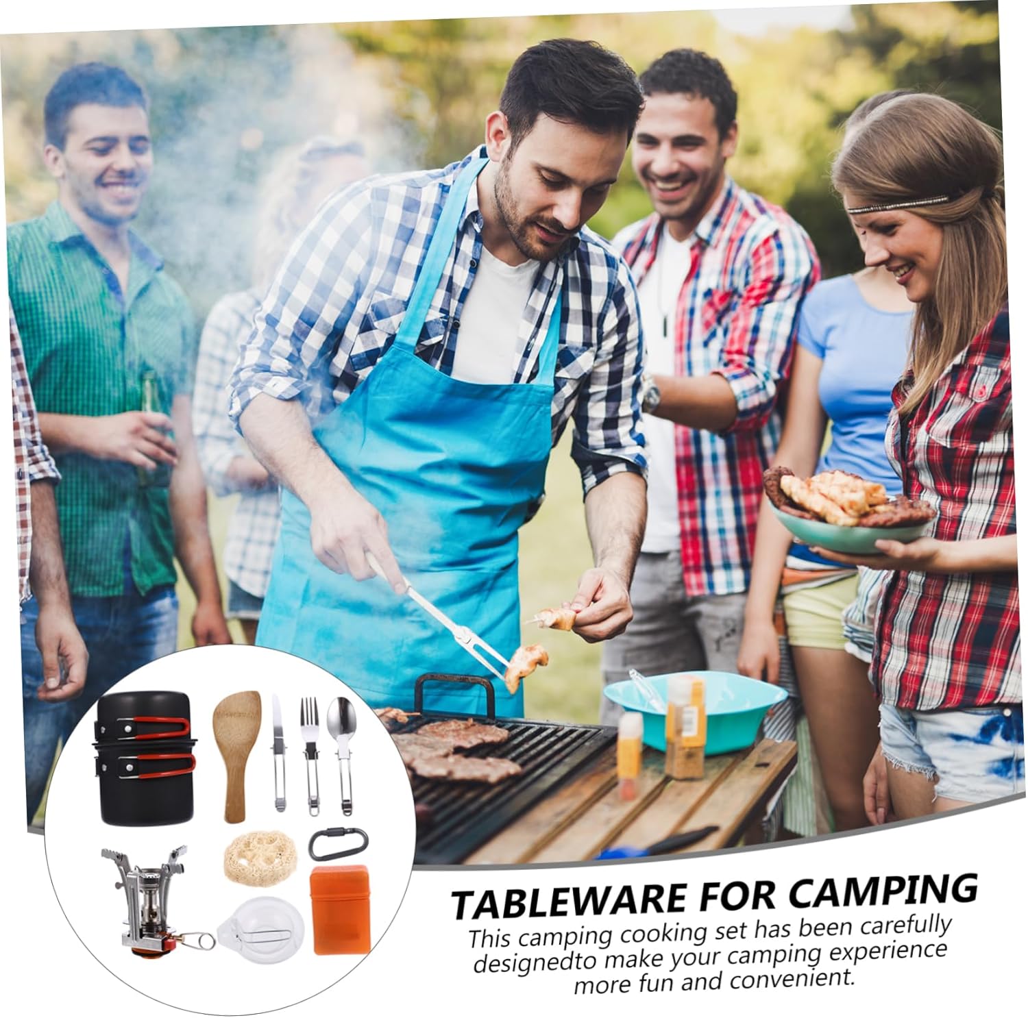 Package Include 1 x Small 1 x Small bowl 1 x spoon 1 x cutter 1 x fork 1 x Furnace 1 x Small bowls 1 x and wood shovels 1 x Plastic spoon 1 x Cleaning ball 1 x Lock catch Features -Material:Aluminum alloy Picnic Tableware -Lock catch size:7*8.1cm/2.76x3.19in Multi-functional Cookware -Small bowl size: 115x60mm/4.53x2.36in Outdoor Cooking Kit -Small bowls size: Diameter: 11CM/4.33in, height: 4CM/1.57in Portable Cutlery - and wood shovels size:13*5cm/5.11x1.97in Mini Teapot Cooking -Spoon size:160*40mm/6.3x1.57in Tableware for Camping -Plastic spoon size: 16cm/6.2in diameter, 7.8cm/3.07, depth and 2cm/0.79 idepth -Color:Orange -Fork size:160*12mm/6.3x0.47in - size:165*12mm/6.5x0.47in -Small size: 122x105mm/0.87x4.13in -Furnace size:40x55x80mm/1.57x2.17x3.15in -Light wight and portable, easy to clean and carry Stainless Steel Tableware. -With scale design is easy and convenient to use Picnic Cookware. - Orange + white box outdoor Cup -Handle can your hand from burning. -Crafted with material which can stand high temperature and weight. - and for outdoor camping, hiking, climbing supplies.Goods DescriptionPicnic Cookware This awesome cookware kit is designed for anyone loves outdoor camping! It is super-portable, making it much more convenient for camping, hiking, backpacking, picnic and other outdoor activities! as a friends