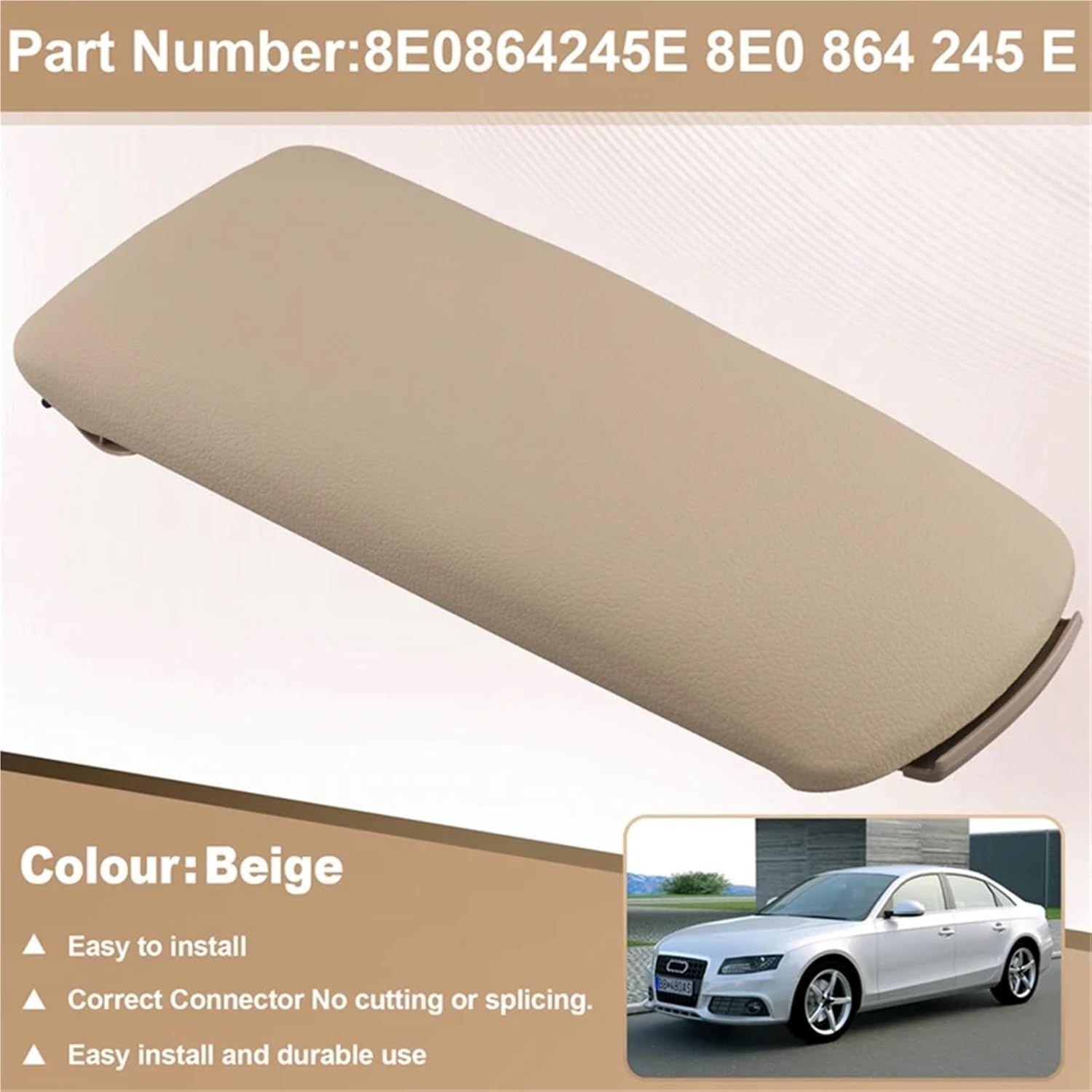 Fitment Type:Direct Install Condition:New Part Number:8E0864245E 8E0 864 245 E Fitment:for A4 B6 B7 2001-2008 4-door Colour:Beige Material:Plastic Package Contents: 1 * Center Console Armrest Cover Only the above package content, other products are not included. Note: Light reflection and different displays may cause the color of the item in the picture a little different from the real thing. The measurement allowed error is +/- 1-3cm.