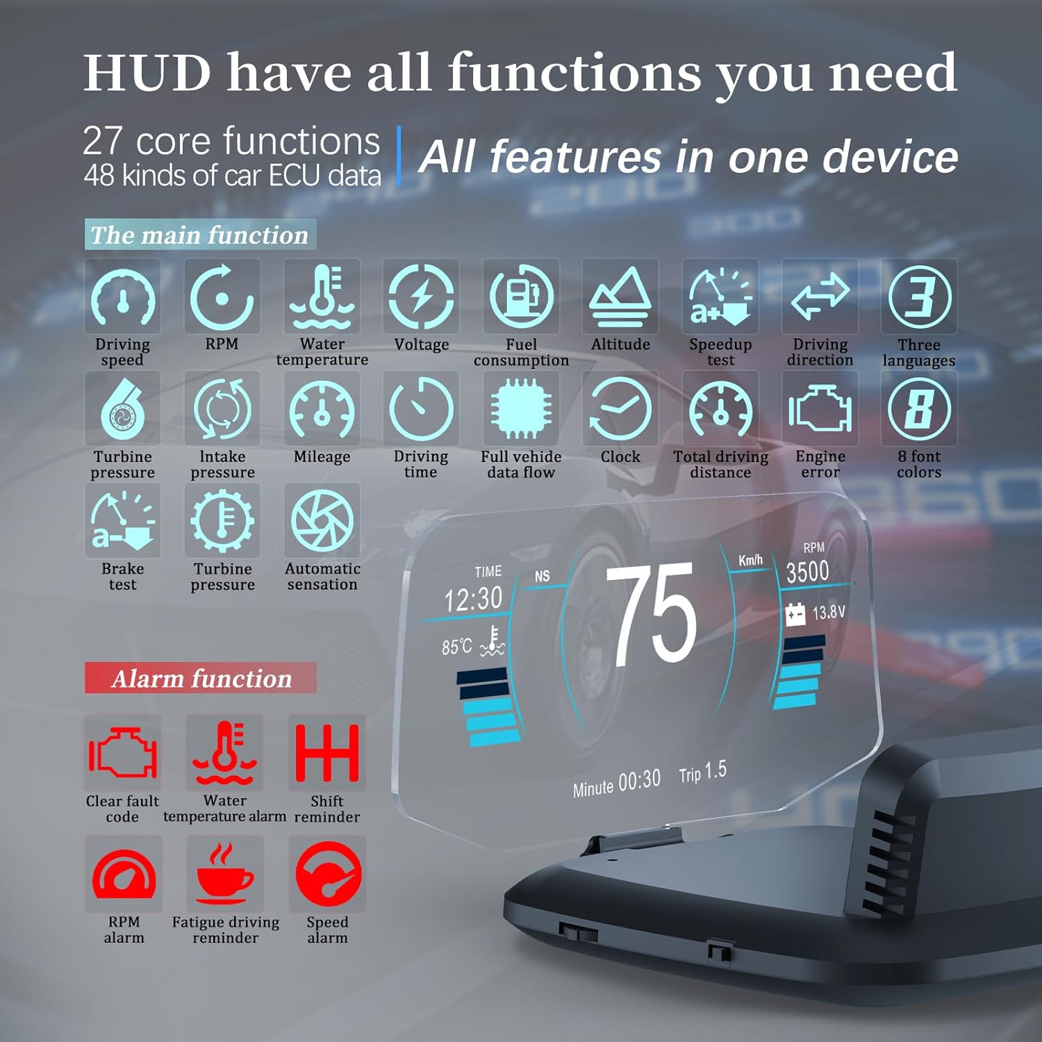 | Included Components | HUD unit/Clean cloth/USB cable/OBD cable/Non-slip mat/Manual |