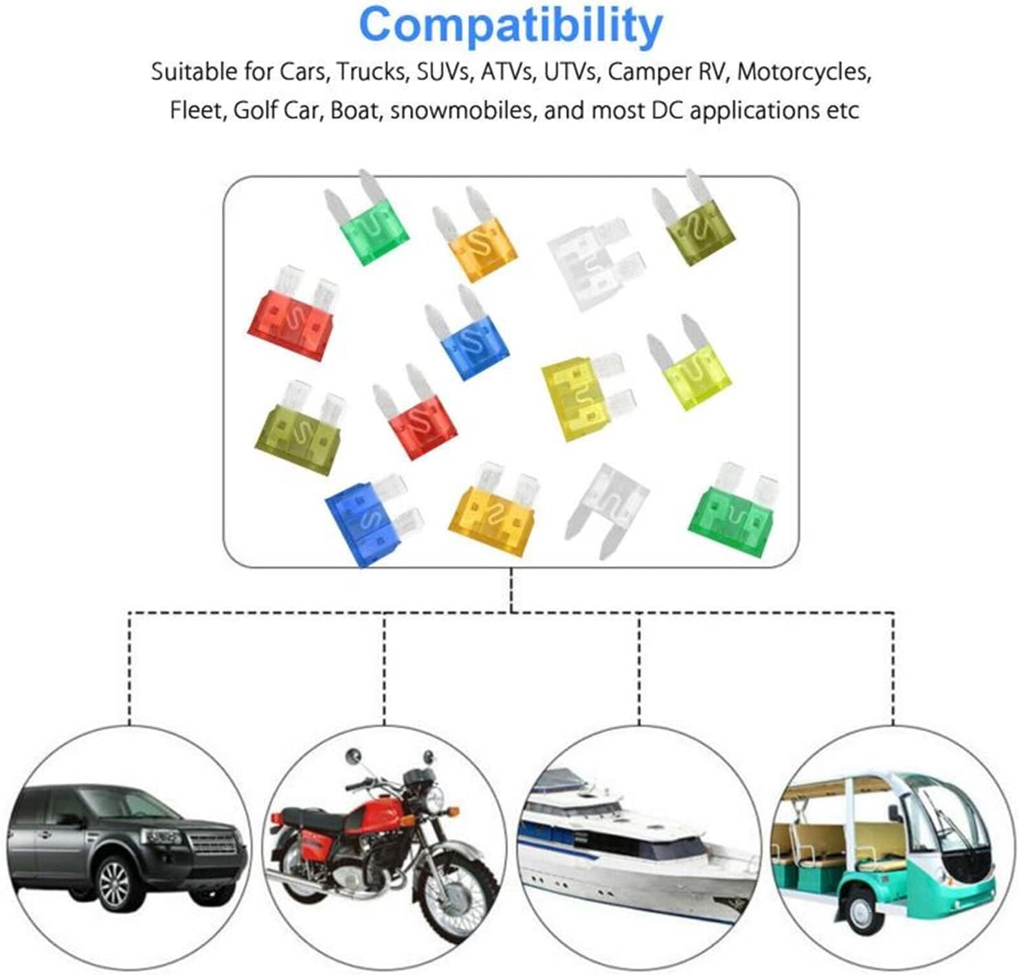 FusesfuseMaterial:plastic + metalSize:1.8*1.9CM / 1.6*1CMPackage size:20*13.8*3.8cmAmpere:2/3/5//7.5/10/15/20/25/30/35AMPQuantity:220PCSPackage Included:Yellow Fuse Clip*1Medium Zinc Car Insurance Sheet 2AMP Light Gray (10pcs)Medium Aluminum Safety Sheet 3Amp Purple (10pcs)Medium Aluminum Safety Sheet 5Amp Orange (10pcs)Medium aluminum fuse 7.5Amp gray (10pcs)Medium Aluminum Insurance 10Amp Red (10pcs)Medium Aluminum Safety Sheet 15Amp Blue (10pcs)Medium aluminum fuse 20Amp yellow (10pcs)Medium Aluminum Safety Sheet 25Amp White (10pcs)Medium Aluminum Insurance Sheet 30Amp Green (10pcs)Medium aluminum fuse 35Amp light purple (10pcs)Small Zinc Car Insurance Sheet 2AMP Light Gray (12pcs)Small aluminum fuse 3Amp purple (12pcs)Small aluminum fuse 5Amp orange (12pcs)Small aluminum fuse 7.5Amp gray (12pcs)Small aluminum fuse 10Amp red (12pcs)Small aluminum fuse 15Amp blue (12pcs)Small aluminum fuse 20Amp yellow (12pcs)Small aluminum fuse 25Amp white (12pcs)Small aluminum fuse 30Amp green (12pcs)Small aluminum fuse 35Amp light purple (12pcs)