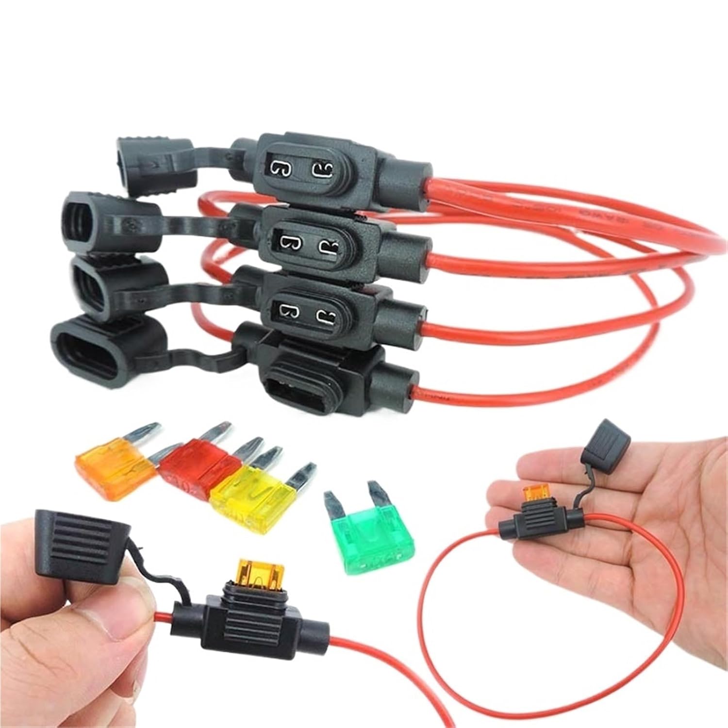 Fuse Holders1set = 1pcs fuse holder + 1pcs auto fuse (NOTE: NOT all fuses, 1pc fuses only !)12awg with 30A14awg with 20A16awg with 10A18awg with 5Apacakge :1set = 1pcs fuse holder + 1pcs auto fuse4 types for choosepackage :1pcs or 4pcs for choose==========High-concerned chemical : NoneModel Number : q221720Origin : Mainland Use : Low VoltageCertification : Nonetype : Fuse Holder + Blade FuseQ8 : 0826cable type : 12awg/14awg/16awg/18awgStore : HF4H Store