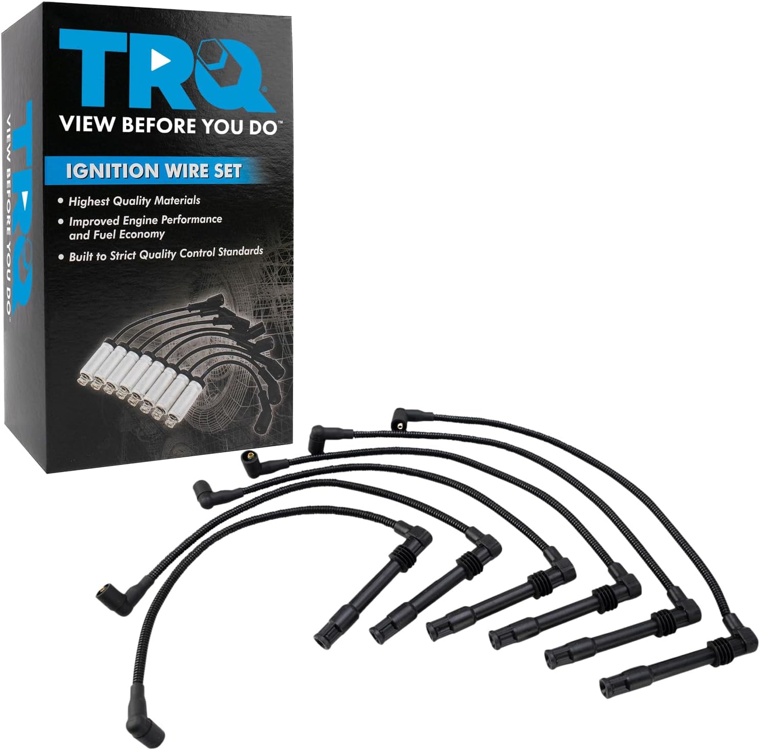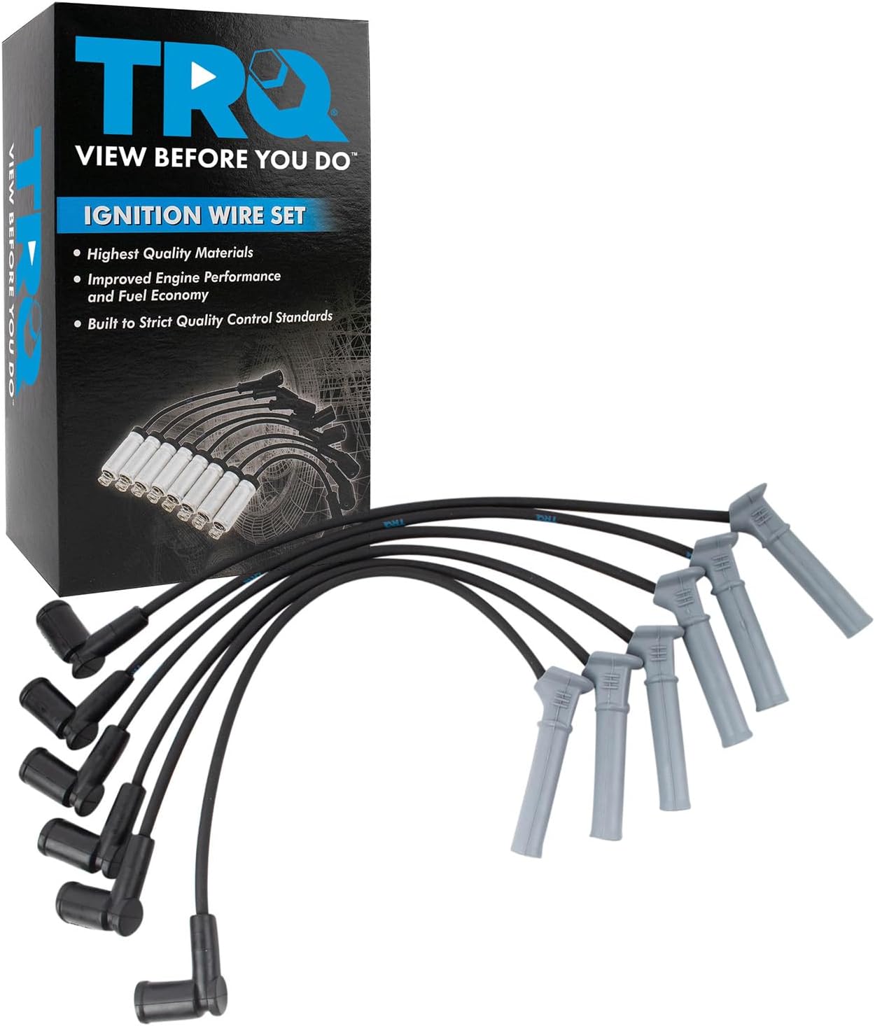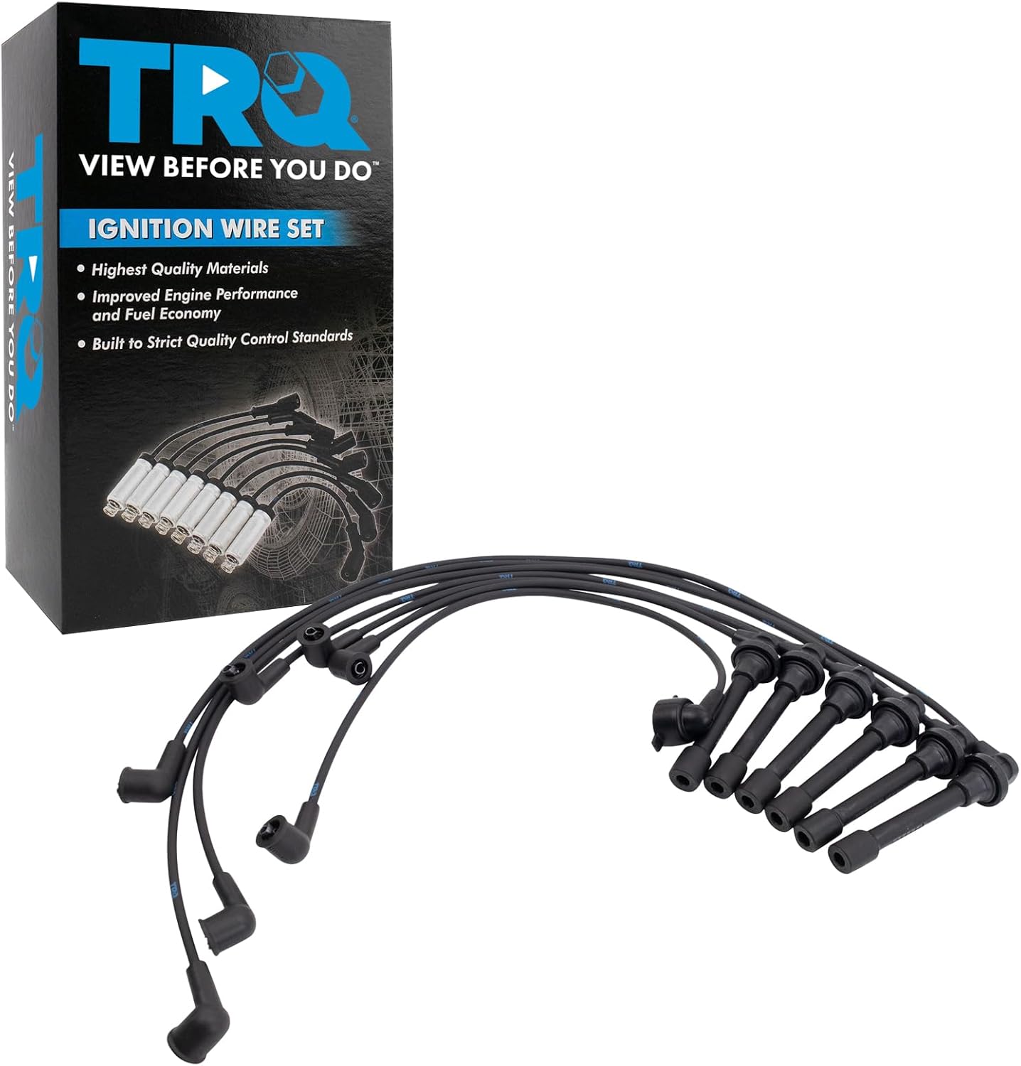 Spark Plug Wire SetFitmentChrysler Aspen 2008-09 - V8 4.7LDodge Dakota 2008-10 - V8 4.7LDodge Durango 2008-09 - V8 4.7LDodge Ram 1500 Truck 2008-10 - V8 4.7LJeep Commander 2008-09 - V8 4.7LJeep Grand Cherokee 2008-09 - V8 4.7LRam 1500 Truck 2011-13 - V8 4.7LRam Dakota 2011 - V8 4.7LProduct AttributesResistance: 1200 OhmsInsulation Outside Diameter: 7 mmInsulation Color: BlackWire Separators Included: NoInsulation Material: SiliconeUniversal Or Specific Fit: SpecificCore Material: Wire Wound Stainless SteelNoise Suppression Type: YesProduct Features Pre-Greased: Seal created to ensure a proper connection with spark plugs Noise Suppression: Minimized EMI and RFI interference with electronics Application Specific Design: No modifications requiredItem DetailsTRQ Wire Sets are precision engineered to keep your engine running like new. Wire Sets naturally wear out over time and should be replaced every 50,000 miles to keep your car running in peak performance, reduce emissions, and prevent any damage to your ECU or sensors. All products are fit and road-tested in our Massachusetts R&D facility to ensure we deliver on our promise of Trusted Reliable Quality.Reference Numbers2500-5242582789135-7400135-83485149 051AC5149 051AD5149-051AC5149-051AD671-81706802 8431AA6802 8431AB6802-8431AA68028431AB7891CH7891