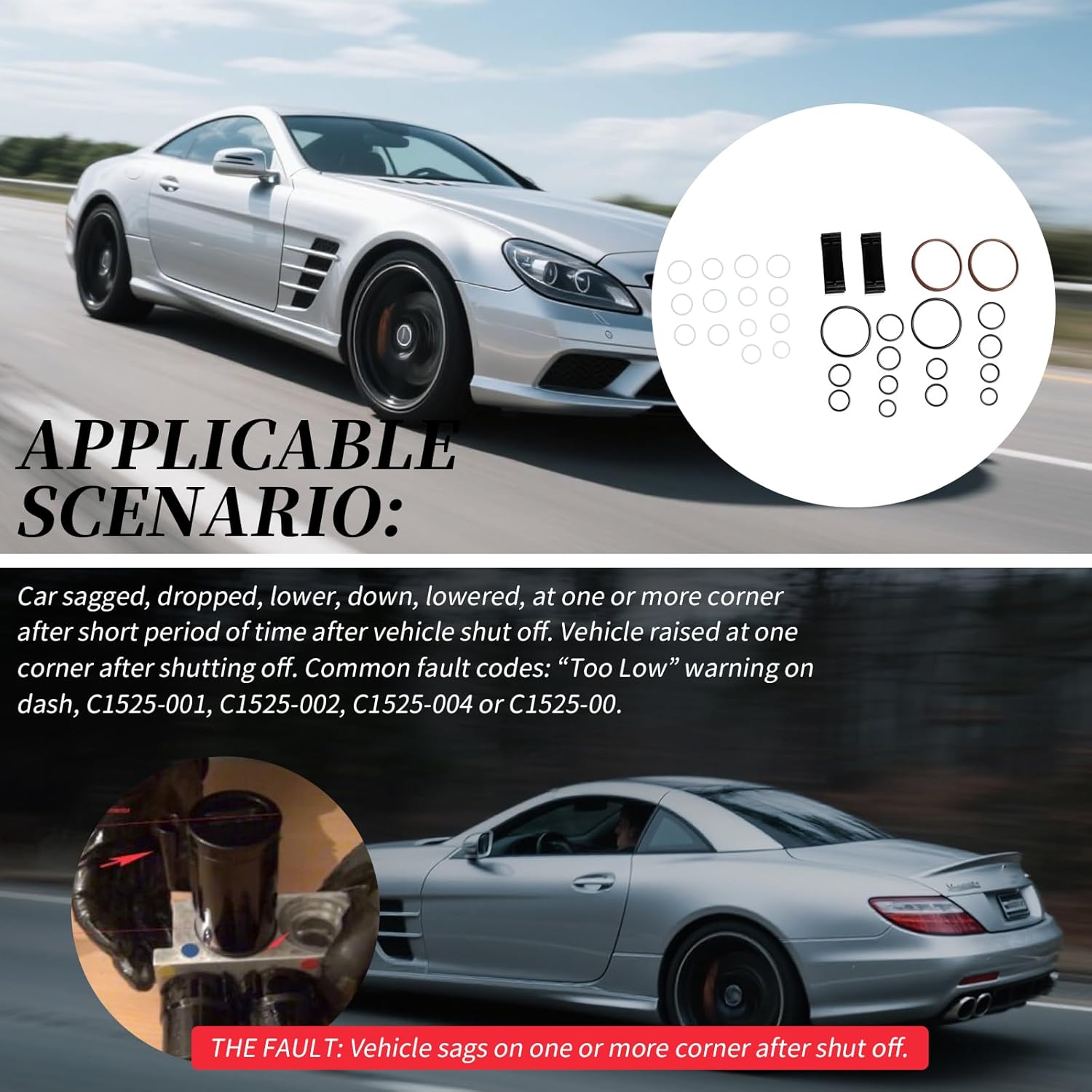 • [COMPATIBLE WITH]:This kit will work on all 2000-2006 ABC valve blocks.Compatible models:CL55 AMG/CL65 AMG/CL500/CL600/S55 AMG/S65 AMG/S500/S600/SL55 AMG/SL65 AMG/SL500/SL600
