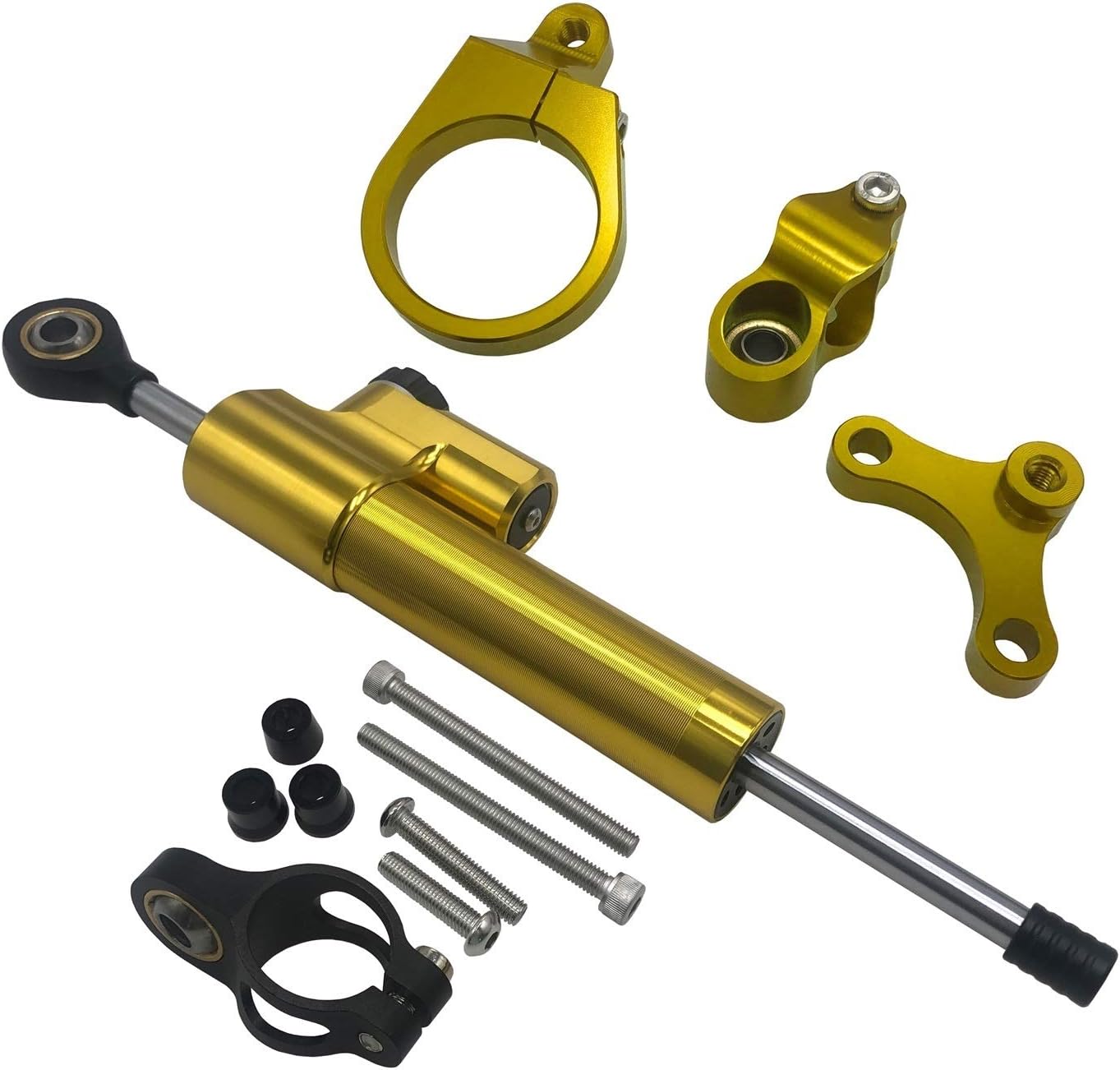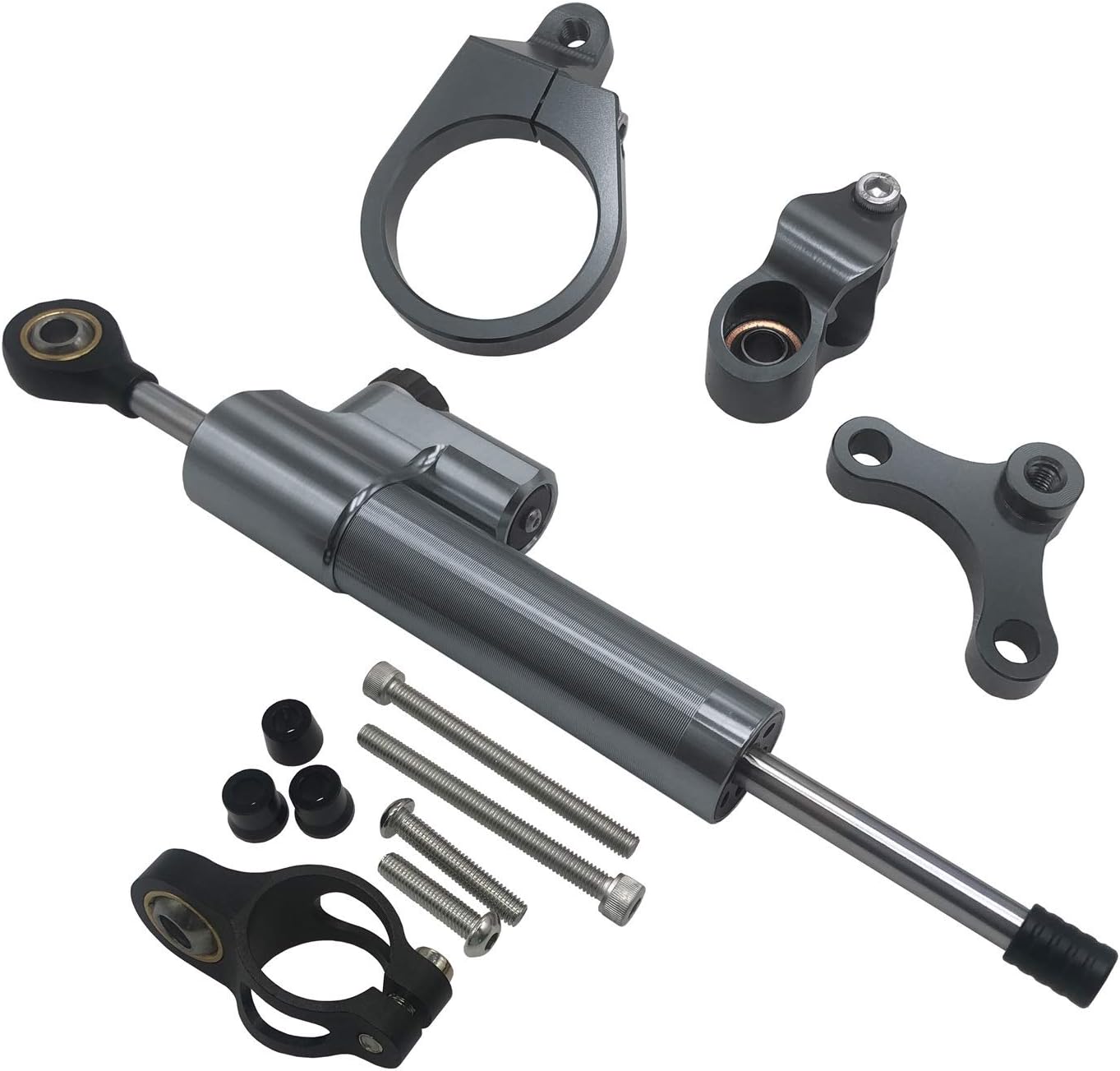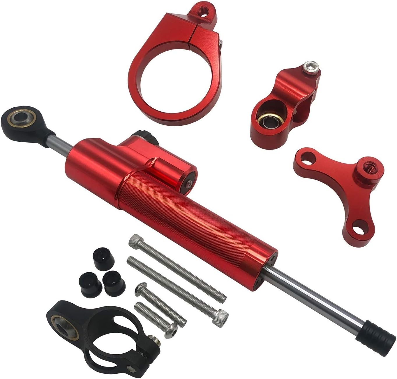 1,100%brand new quality product.2.CNC aluminum manufacturing,strength,can stand up to a lot of wear and tear.3.Reduce rider fatigue and eliminate headshake,improve lap time。4.Strong decorative effect,highlight your motorcycle appearance by adding a sense of mechanical feel.5.Direct replacement for the previous old or broken one,easy to install without installation instruction.
