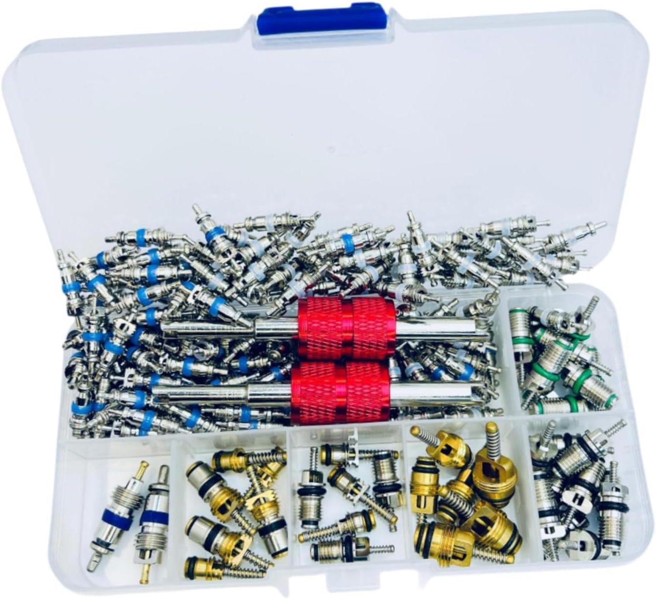 Description: - 【High Pressure Reliability】: Engineered to meet industry standards, these valve cores deliver stable performance even under high pressure conditions in various automotive air conditioning and refrigeration systems - 【Material】: Crafted from pure copper, the valve offer exceptional strength and long durability, ensuring reliable use over extended use - 【Easy Installation】: The comprehensive kit includes 110 valve cores and 2 core removal tools, allowing for quick and straightforward replacement of old or damaged components without professional assistance - 【Efficient Maintenance】: Designed for installation and removal, these high pressure valve cores help minimize system downtime during maintenance or repairs - 【Wide Application】: Suitable for residential, , and industrial environments, this versatile set meets diverse maintenance needs for air conditioning and refrigeration systemsSize Chart:box : 13cmx6.5cmx0.21cm/5.12inchx2.56inchx0.08inchPackage Includes:110 valve cores ,2 core removal toolsNote:Please allow slightly errors 1-2cm/0.39-0.79inch differences due to manual measurement.