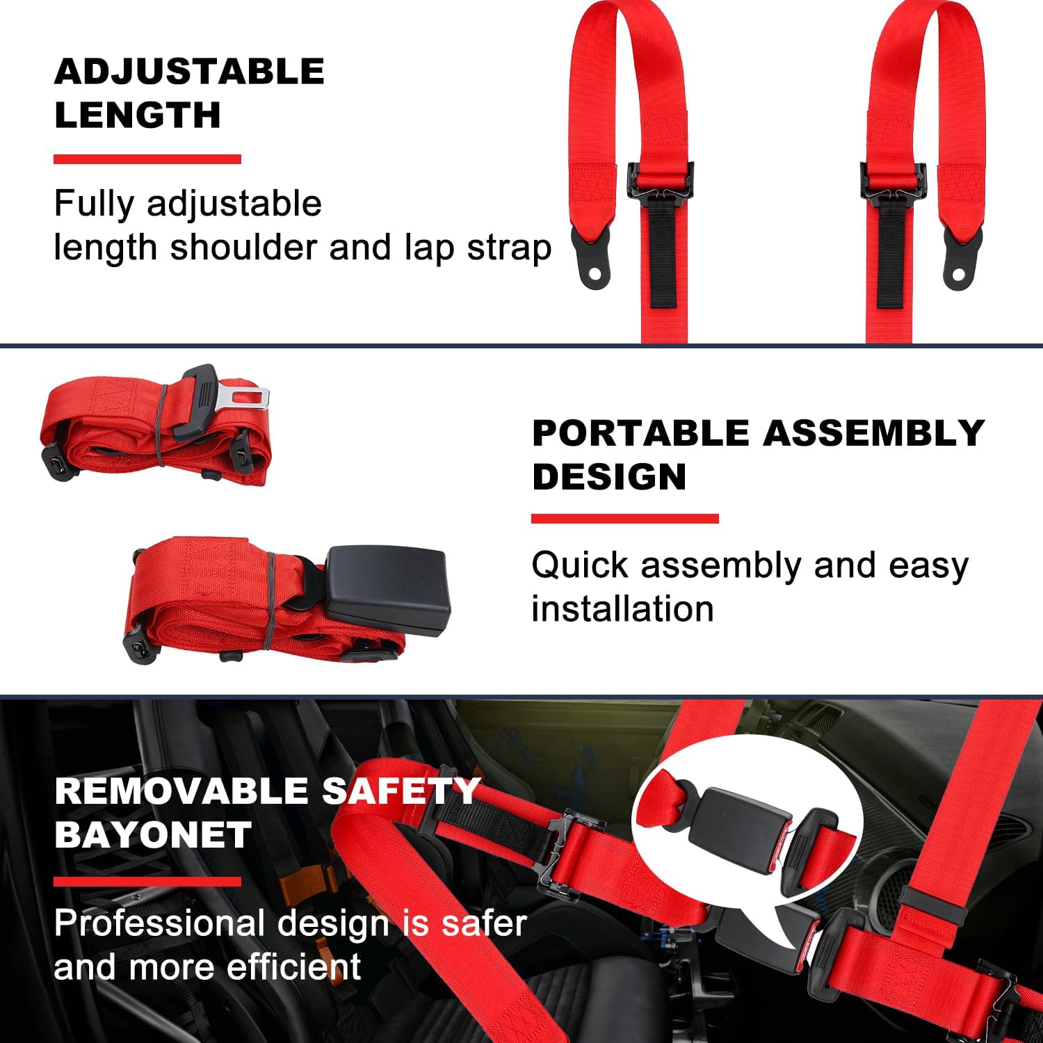 Product Description: 4 point harness set, 2" super comfort heavy duty shoulder pads, red high strength polyester silk shoulder straps. Each product has undergone conflict testing.
