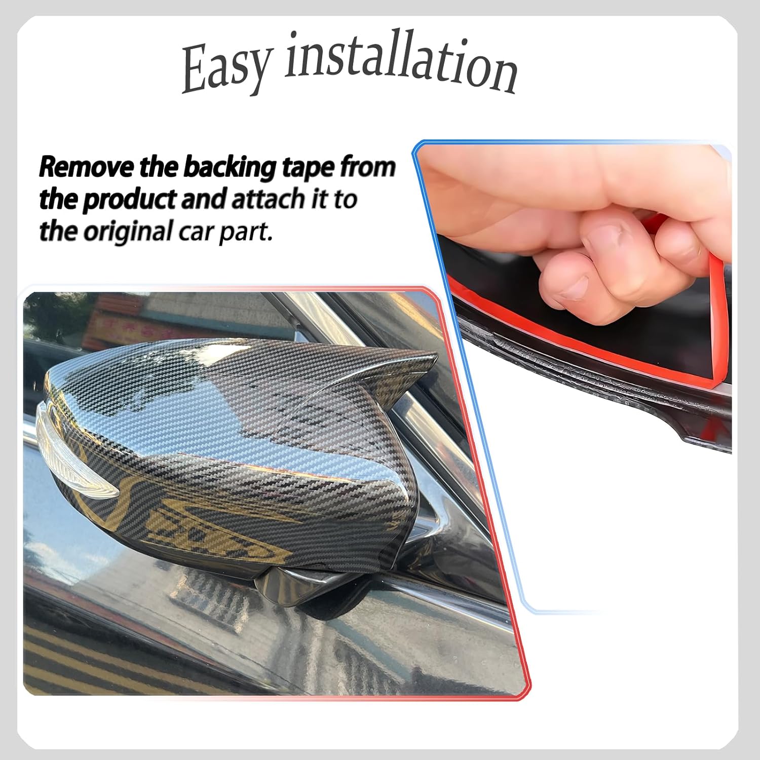 Elevate Your Car's Interior: Transform the ordinary into extraordinary with our premium interior decorative accessories. Protect your vehicle's original parts from unexpected scratches while infusing a sporty vibe into your car's interior. Fitment: Designed specifically for Nissan Sentra 2013-2019/Nissan Altima 2013-2018. Features and Materials: This brand-new accessory is crafted from durable ABS plastic, ensuring long-lasting style and protection. Easy Installation: Our product features automotive-grade double-sided adhesive on the back, making installation easy and secure. Enjoy a quick, hassle-free setup that stays firmly in place. Package Includes: 2PCS Side Mirror Cover Decorative Cover - Carbon Fiber. Installation Instructions: Compare: Before installation, compare your vehicle parts with the product to ensure compatibility. Clean: Thoroughly clean the original vehicle parts. Dry: Allow the surface to dry completely for about ten minutes. Preheat: Preheat the adhesive area on the product to enhance stickiness. For an even stronger bond, consider using an adhesive promoter. Attach: Peel off the protective film from the adhesive tape and press firmly onto the vehicle part, applying pressure to secure it. Important Notes: Avoid contact between the adhesive tape and water during installation, as moisture can weaken the adhesive's effectiveness. Do not wash the car or clean the product with water within two days of installation to ensure a strong bond. Upgrade your car's interior effortlessly while adding a touch of sporty elegance. Order now and experience the difference!