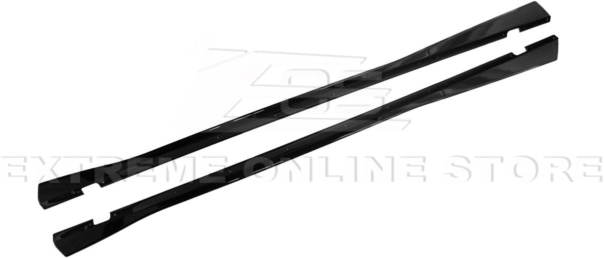 Replacement For 2015-Present Dodge Challenger Models | Performance Style ABS Plastic - Painted Glossy Black Side Skirts Rocker Molding Extension Pair