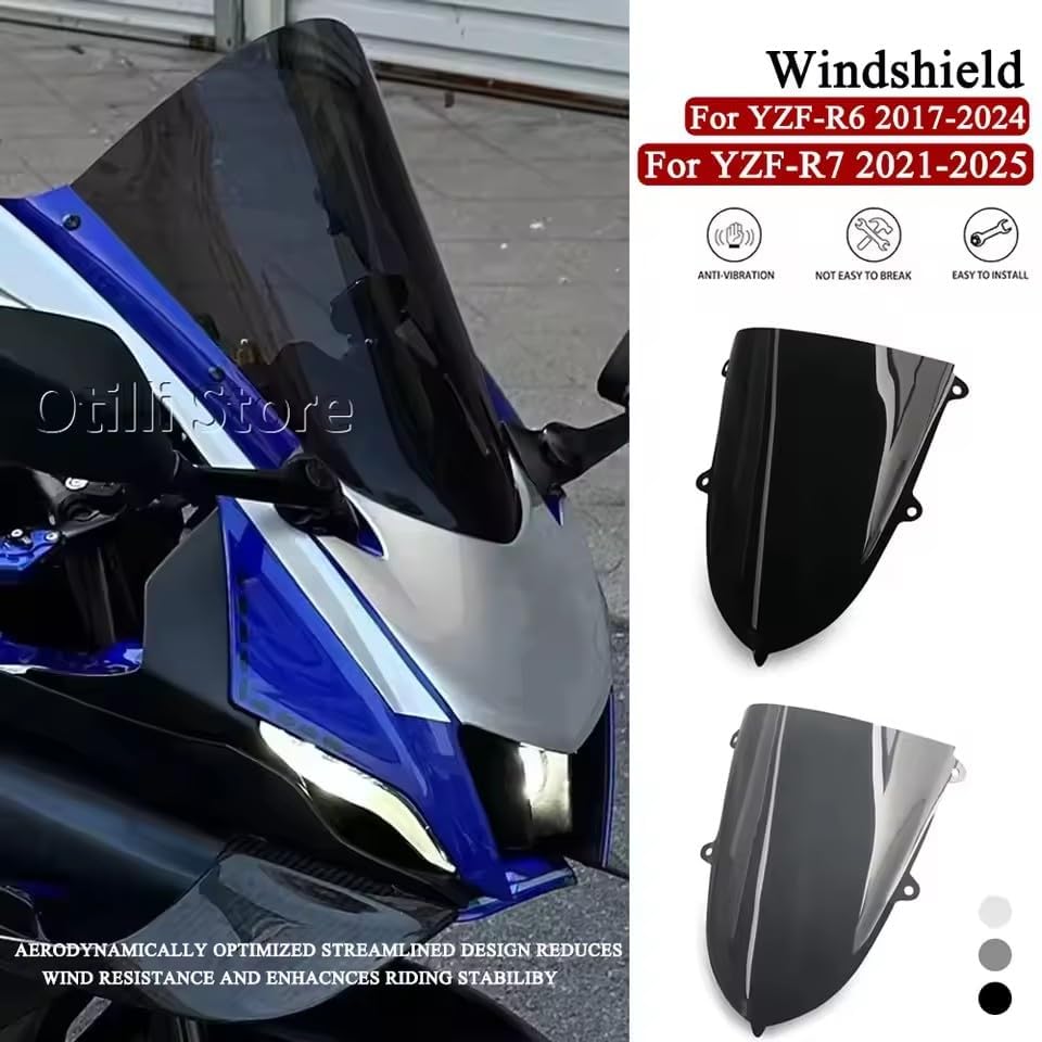 Fitment: For Yamaha YZF R6 2017-2024 For Yamaha YZF R7 2021-2025 Material Type High quality acrylic Item Weight 0.6kg Item Type Wind Deflectors Condition 100% brand new