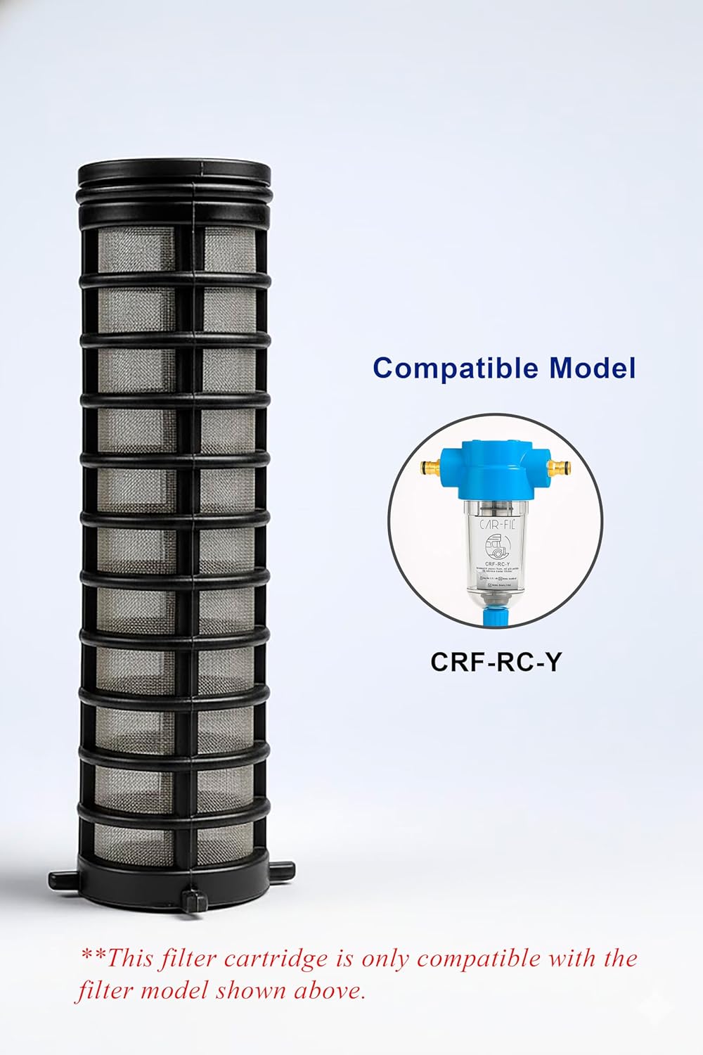 This Cartridge captures visible particles such as sand, algae, and coarse debris down to 50 microns. It helps prevent clogging in pipes, fittings, and water-using equipment in RVs, boats, tiny houses, or other mobile systems. ⚠️ Notice This product is a replacement cartridge only. It is not a complete filter system and cannot be used alone. Please ensure compatibility before purchasing — designed to fit CAR-FIL CRF-RC-Y model.