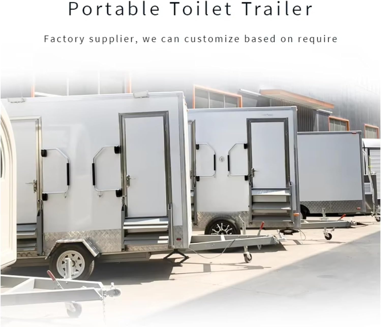 Feature:Durable Warranty:1 Year After-sale Service:Online Technical Support Project Solution Capability:3D model design Application:Outdoor, Toilet Model Number:2-station Material:Steel, Fiberglass Use:Toilet Product Type:Portable Toilet Design Style:Modern Product name:portable trailer Color:Customized Color Inside:can be customized Usage:Hotel, Office, Sentry Box,Guard House, Shop, Toilet, Villa Wheel:4 road wheels/1 guide wheel Flooring:Non-slip flooring(aluminum)with drain, easy to clean up. Seweage tank:Fiberglass/stainless steel Axle:Single axle:2 wheels /Double axle:4 wheels Specifications 2-station restroom trailer Machine Size 2.2*2.1*2.55 m /According to demands Exterior Material Fiberglass Package Stretch film, wooden case Chassis Integral steel frame construction and suspension components treated with rust resistant protective coating wheels Two wheels with 14 inch tyre,One guide pulley,4 jacks Floor Non-slip Aluminum Checker Floor with drain, easy to clean up Electric system Lighting device, multifunctional sockets, switches Water Sink Systerm Single washing hands sink with Automatic hot and cold water conditioning systemOn/off control switch Standard inside details Double windows,single washing hand sink,LED light, plugs etc. Internal configuration Including toilet, urinal, sink, water heater, clean water tank, black water tank, exhaust fan Advantages of mobile toilet 1. Strong mobility, so as to avoid the waste of resources caused by house demolition. 2. Various treatment methods can be adopted according to the limitation of the environment. 3. It covers a small area. Compared with the traditional toilet, the mobile toilet greatly saves the land area, which just caters to the current land tension situation. 4. It is beautiful and generous. On the basis of ensuring practicality, it pays attention to the importance of beauty and becomes a scenic line of tourist attractions and park districts.