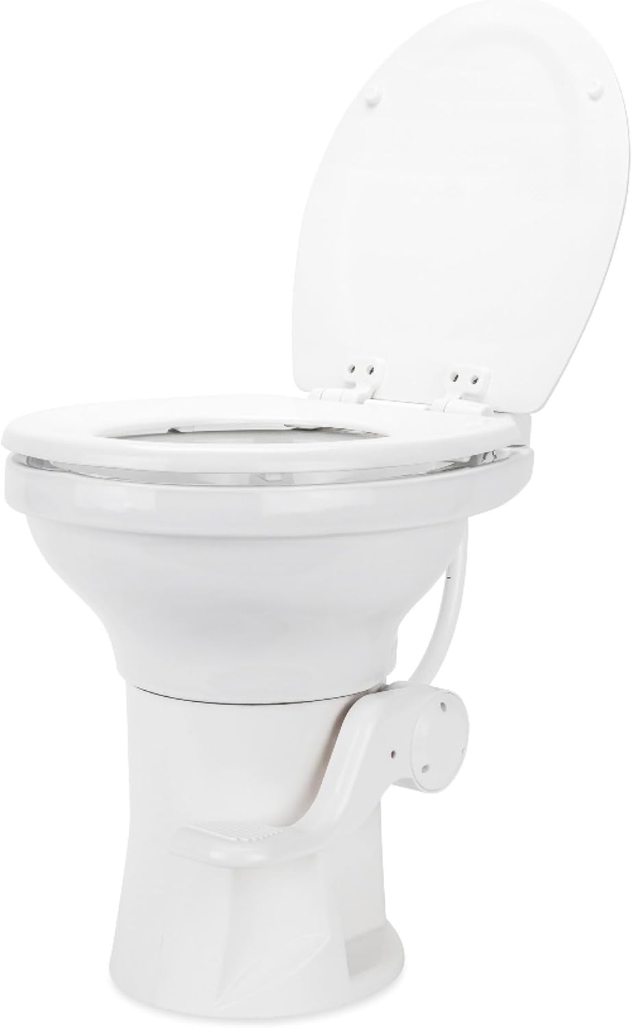 Upgrade your camping experience with the Camco Premium Ceramic Camper/RV Toilet. This toilet is designed to provide superior comfort and convenience on all your camping adventures. With its ergonomic design and chair-height seating, this RV must-have brings the comforts of home anywhere you travel. No more struggling with a low and uncomfortable toilet while on the road! Not only does this camping toilet add a touch of luxury and style to your RV, but it also offers exceptional functionality. It features a strong gravity flush system and a two-step foot pedal, perfect for any road trip or camping adventure. Made with premium quality materials, this RV essential guarantees long-lasting performance and effortless cleaning. Its sleek and modern design will elevate the overall look of your camper, making it feel more like a home. Don't settle for uncomfortable and outdated camper toilets. Indulge in the luxury and convenience of Camco’s Premium Ceramic Camper/RV Toilet!