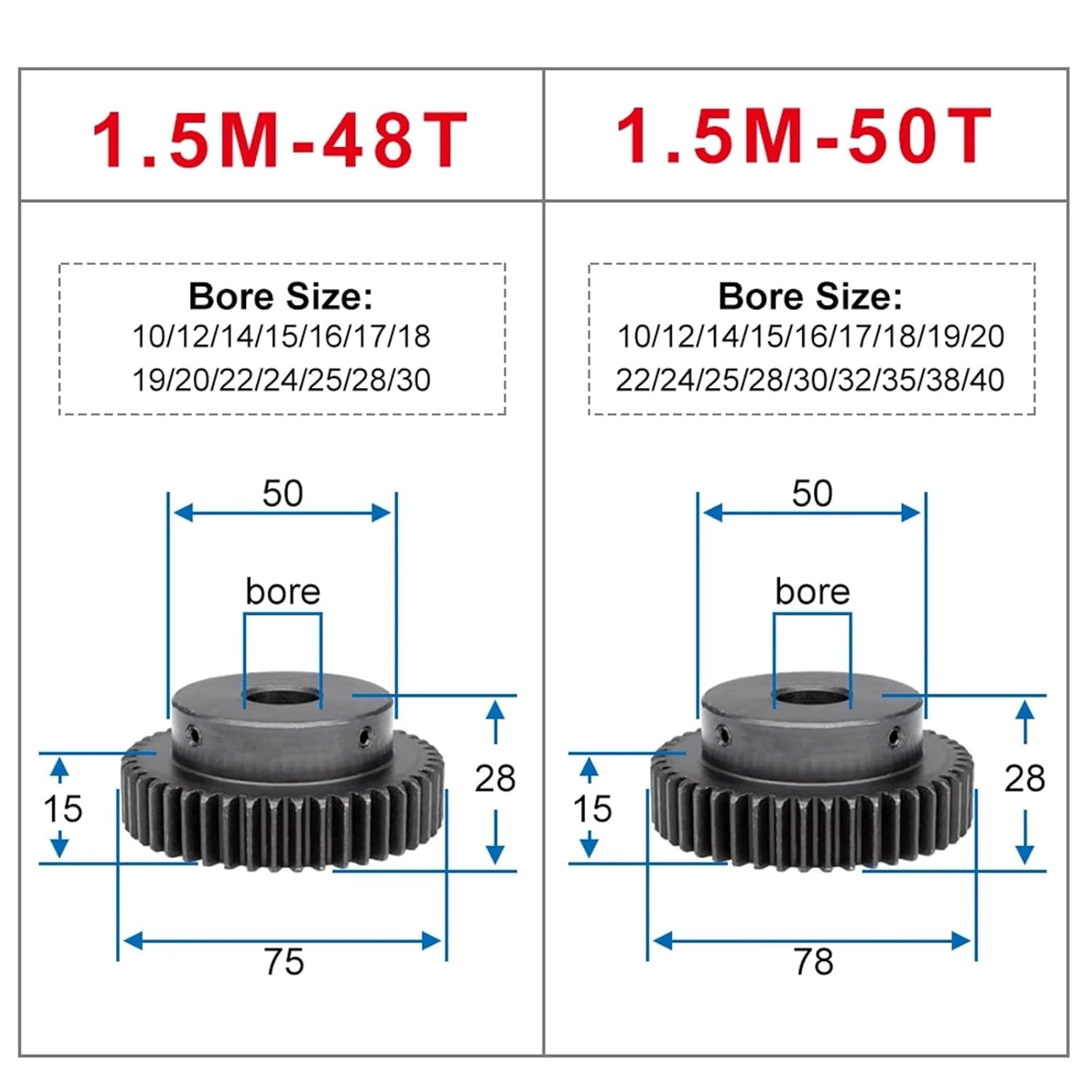 Drive GearDirection : Right HandPressure Angle : 20Processing : HobbingModel Number : spur gear 1.5M48/50/52/54TTooth Profile : Spur GearMaterial : Carbon SteelShape : SpurTeeth number: : 48/50/52/54 TeethApplication: : transmission between staggered axesFixed Method: : Clamping Screw