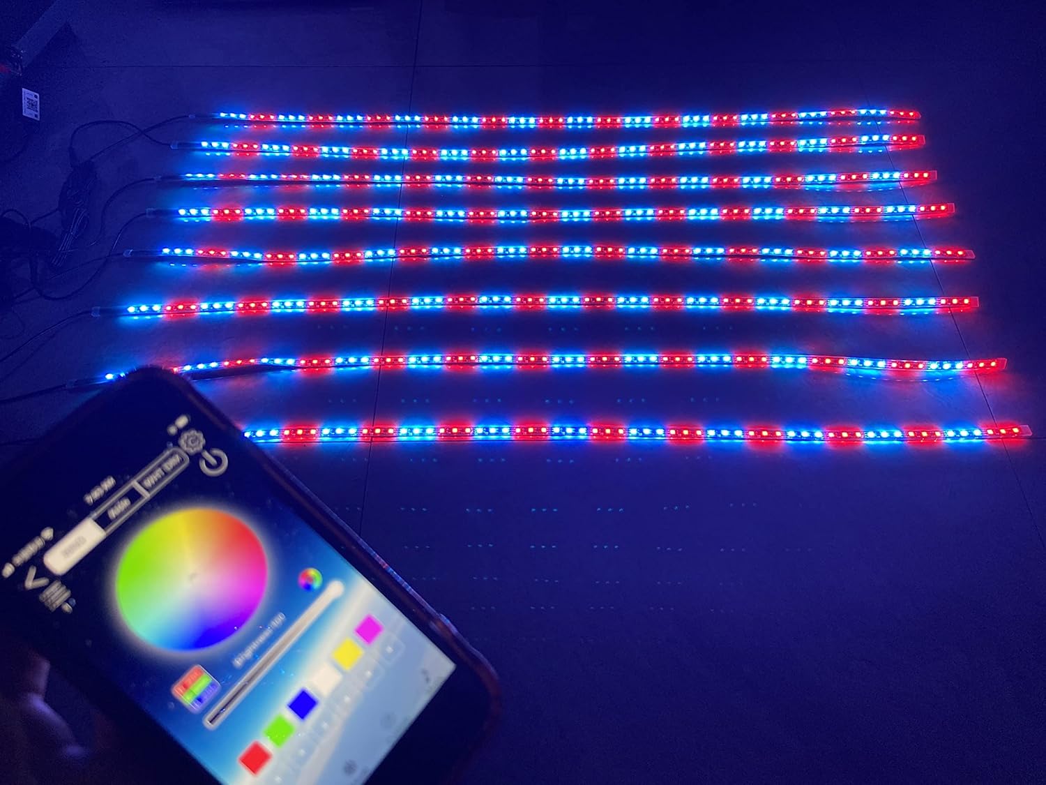 | Included Components | 1 Set - 5.0meter set Wiring Harness with 8ways Splitters ( with Bluetooth controller on wire), 1PCS - Remote ( Without Battery ), 8PCS - 6.5FT Underglow Light Strips |