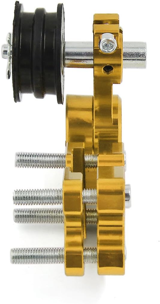 Gold Tone Metal CNC Chain Tensioner Adjuster for MotorcycleFixed position chain tensioner for motorcycles.It is necessary for all serious riders, it ensures proper chain and alignment, it prevents the chain derailment, excess wearing of the sprocket and chain life.