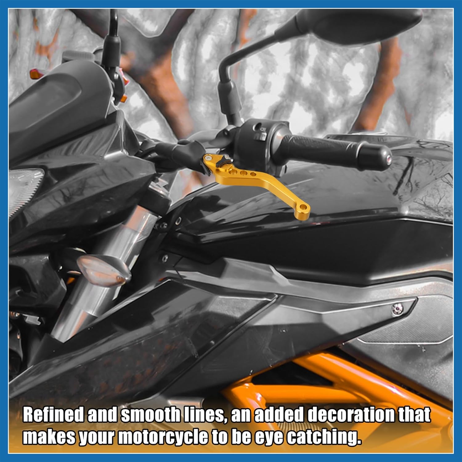 Features:Lever Body made of durable aluminum alloy, brake pump use CNC machining process, corrosion resistant and not easy to fade. Improve stability and durability.Adjustable gear with 6 positions, not easy to slip.The 6 position adjuster allows you to easily adjust the lever range settings for the most comfortable posture.Direct install, no need for any modification.Direct replacement for broken or old levers.Enhance the look of your motorcycle and make your motorcycle fashionable.Good braking performance and increased riding safety.Specifications:Color: Gold ToneMaterial: Aluminum AlloyDimension: 26.5x7.4x7.2cm / 10.43''x2.91''x2.83''(L*W*H)Hole Diameter: 22mm / 0.87"Placement on Vehicle: Front Left RightFitment:Universal fit for most motorcycles with 7/8" 22mm Handlebar, such as for Harley for Honda for Kawasaki for Suzuki for Yamaha.Note:Please make sure the size fits your motorcycles.Package Included:1 Pair Brake Clutch Pump Levers