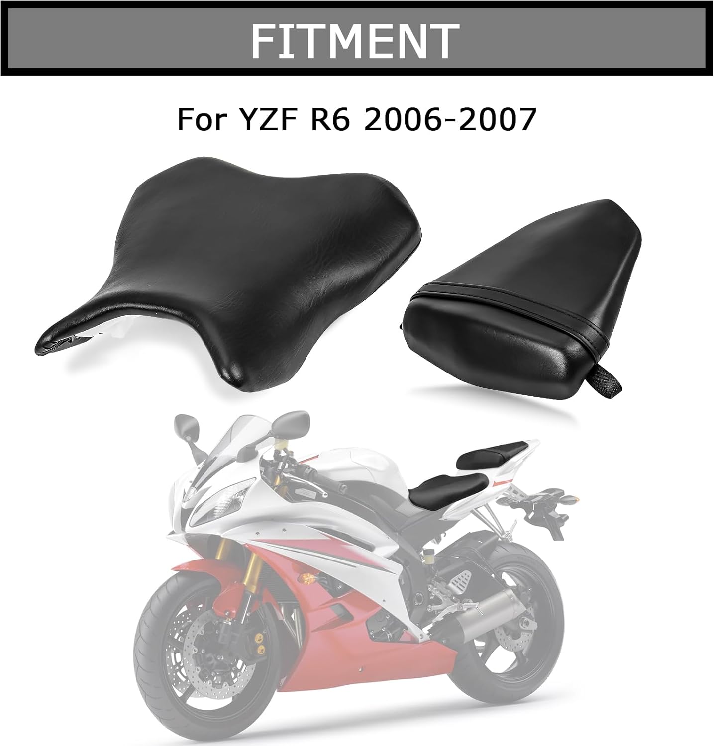 Fitment Seat for YZF R6 2006 Seat for YZF R6 2007 Not for R6S Specification Condition:100% Brand new aftermarket item Material: Synthetic leather, High-density foam and High quality ABS plastic Color:Black as picture show Feature 1. Perfect replacement for your motorbike. 2. Made of High Quality Material. 3. Easy to install. Notes 1.We strongly suggest comparing the posted picture to your faulty/old unit!Please kindly check your motorcycle's model and confirm this item is suitable for it before ordering. 2.The product does not contain installation instructions. If you have any questions about that, we kindly recommend you go to the nearby mechanic to ask for professional instructions. 3.Installation:Easy to install,assemble and remove with great convenience,direct replacement.Highly recommended installation by professional. 4.Color Difference: Due to the light and resolutions setting difference, the item's color may be slightly different from the pictures. 5.Please allow slight dimension difference due to different manual measurement.