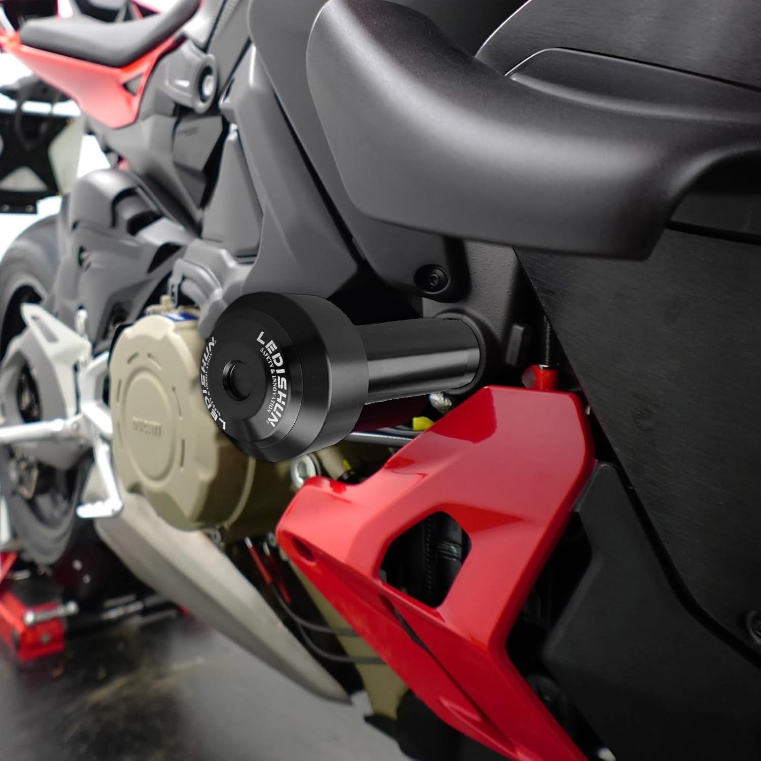 Small bourgeoisie can also easily afford the safety of people and car bodies . Regardless of the size of the vehicle, basic protective measures need to be taken. Simple and low-key design, can absorb unexpected severe impact Affordable price, even minor damage can be replaced painlessly Product features: Beautiful and low-profile design, greatly reduce the impact and damage caused by reversing The special design of the special car ensures that the reversing can be effectively protected and does not damage the frame body Nylon material is high rigidity: strong hardness, high wear resistance. Shock absorption: It can absorb the impact force when reversing and effectively protect the car body. Low coefficient of friction: Low coefficient of friction effectively reduces the probability of the car body bouncing and overturning. The anti-fall ball is made of high quality Pom combined with aerospace grade 6061 aluminum alloy CNC machined ball column The surface is anodic colored, not easy to fade, not easy to change color, lasting beauty Description: Condition: high quality Brand New Material: high quality Pom/ T6 6061 aluminum Color: Black/ Red/ Gray/ Gold Compatible with Ducati Vehicle for Streetfighter V4 S (2025+) for Streetfighter V4 (2025+) Package Included: 1 pairs (left + right) Package weight: 1.3 KG ( Please Ensure This Part Fits For Your Motorcycle Before order ) Polyformaldehyde (POM for short) is a thermoplastic used in engineering and has the following properties: High rigidity: strong hardness, high wear resistance. Shock absorption: can absorb the impact of reversing, effectively protect the car body. Low friction coefficient: low friction coefficient can effectively reduce the probability of body jumping and flipping due to excessive friction.