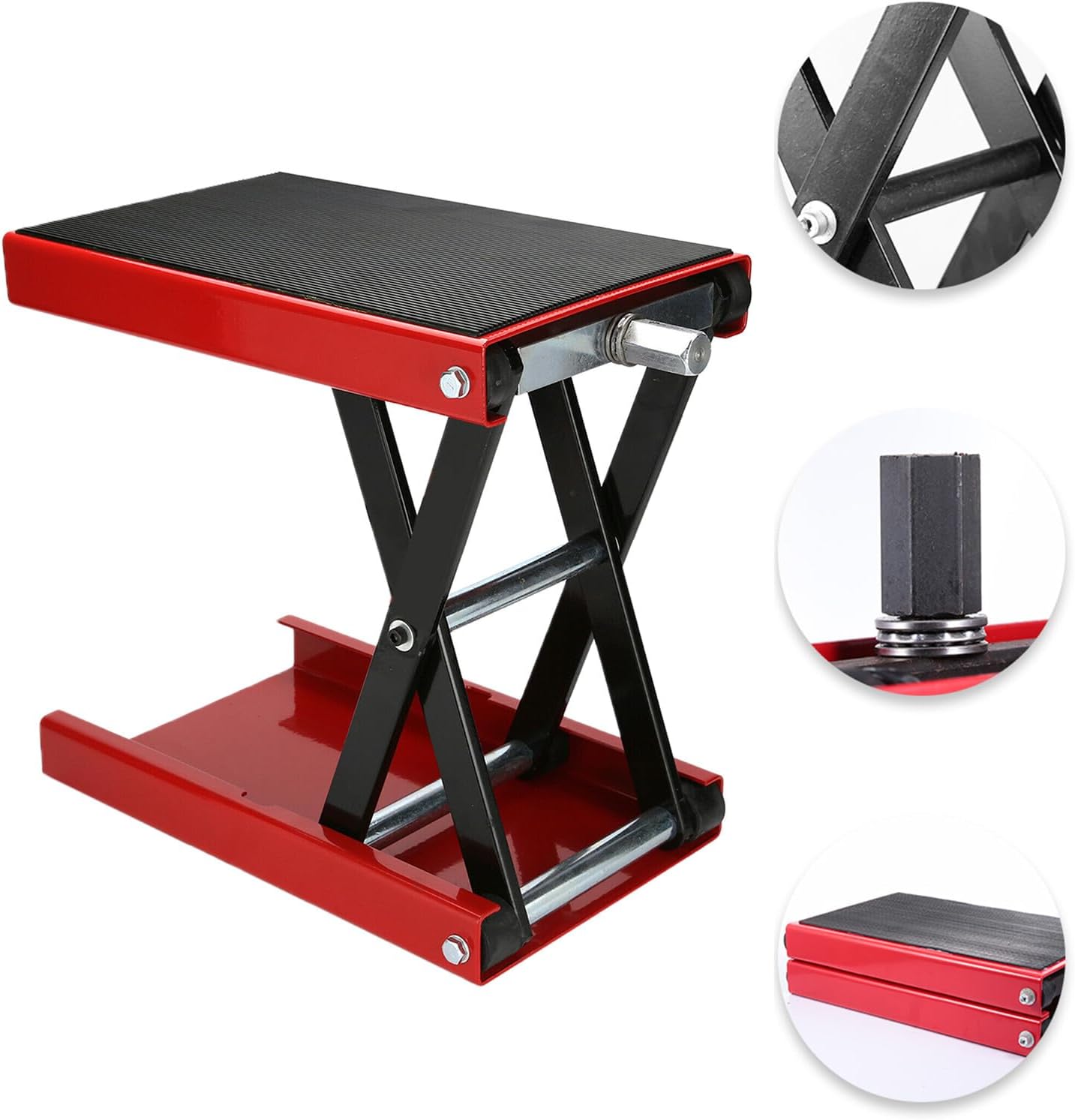 Package List 1 x motorcycle lift table Characteristics -Sturdy construction: engineered to withstand heavy loads, providing reliable support for motorcycles of various sizes and weights -Quick and smooth: optimize your repair workflow with lift that offers rapid and stable height adjustments for motorcycles motorcycle engine stand -Universal usability: suitable for all types of motorcycles, from dirt bikes to electric scooters, ensuring broad compatibility motorcycle stand -Color:Multi - Size: 39.00X22.00X9.00cm/15.33X8.65X3.54in -Easy to use: simplified mechanics of this motorcycle lift table allow for single person use, making it convenient for repair projects motorcycle maintenance stand -Product Info: Motorcycle lift platform -Material:Steel, Plastic -Safety focused: the motorcycle jack features a secure base and locking system to prevent tipping or movement during maintenance motorcycle repair standGoods Informationbase for lifting motorbike Its sturdy design and easy-to-use features ensure a convenient using experience, while the versatile motorcycle lift table adapts to various bike sizes and maintenance requirements.bike repair stand floor This motorcycle hydraulic lifting table is an essential tool for riders and mechanics, offers a practical solution for parking, repairing, and maintaining bikes