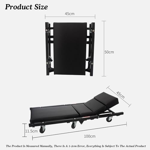 Experience unmatched convenience and comfort with our Low Profile Creeper, designed for those who demand efficiency in their garage, workshop, or during auto repair tasks. This versatile mechanic creeper serves multiple purposes, functioning as both an automotive creeper and a foldable garage chair, making it an essential addition for professionals and DIY enthusiasts alike. Key Features: 1. **Compact Design**: The low profile design allows you to maneuver easily in tight spaces, whether you're working under vehicles or reaching difficult areas in your workshop. 2. **360° Omnidirectional Wheels**: Our creeper is equipped with smooth-rolling wheels that provide effortless movement, ensuring you can glide seamlessly from one task to another without interruption. 3. **Easy Maintenance**: The is crafted for easy cleaning, helping you maintain a tidy workspace and reflect a professional image, no matter how messy the job gets. Specifications: - **Product Name**: Low Profile Creeper/Automotive Creeper and Air Seat/Foldable Garage Chair - **Color**: As shown - **Material**: steel e with leather padding - **Dimensions**: 100X45X11.5cm (LxWxH) - **Assembly Required**: Yes - **Maximum Load Capacity**: 120 kg Package Includes: - 1 x Folding Car Creeper Seat - 1 set of mounting accessories Please note: - This listing includes only the Folding Car Creeper Seat. Other accessories are not included. - Minor color variations may occur due to lighting, and allow for a slight measurement error of 1-3 cm. Please ensure you are comfortable with these details before placing your order. Invest in our Low Profile Creeper and enhance your work efficiency with a tool that adapts to your needs, providing comfort and support for all your automotive tasks.