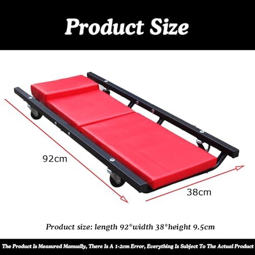Discover the ultimate solution for your automotive needs with our Low Profile Creeper and Foldable Garage Chair. Whether you're tackling repairs in your garage, working in a warehouse, or handling various projects, this versatile tool is designed to enhance your efficiency and comfort during long hours of work. **Key Features:** 1. **Space-Saving Design:** Our creeper easily fits into narrow spaces, making it a must-have for garages and repair shops where maneuverability is key. 2. **360° Omnidirectional Wheels:** Experience effortless movement with our smooth-rolling wheels, allowing you to glide seamlessly around your workspace. 3. **Easy to Clean :** Maintain a professional look with a that wipes clean quickly, ensuring your workspace stays tidy and nized. **Specifications:** - **Product Name:** Low Profile Creeper / Automotive Creeper / Foldable Garage Chair / Mechanic Creeper - **Color:** As shown in the image - **Material:** steel e with comfortable leather padding - **Dimensions:** 102x43x11cm (LxWxH) - **Assembly Required:** Yes - **Maximum Load Capacity:** 120 kg **Package Includes:** - 1 x Folding Car Creeper Seat - 1 set of mounting accessories **Important Notes:** - This listing is for the Folding Car Creeper Seat only; additional accessories are not included. - Please be aware of minor color variations due to lighting during photography and allow for slight measurement discrepancies of 1-3 cm. Upgrade your workspace with our Low Profile Creeper today and experience the blend of comfort and functionality that makes it an essential tool for any mechanic or DIY enthusiast. Enjoy the ease of movement and the convenience of a well-designed creeper that truly meets your automotive needs.