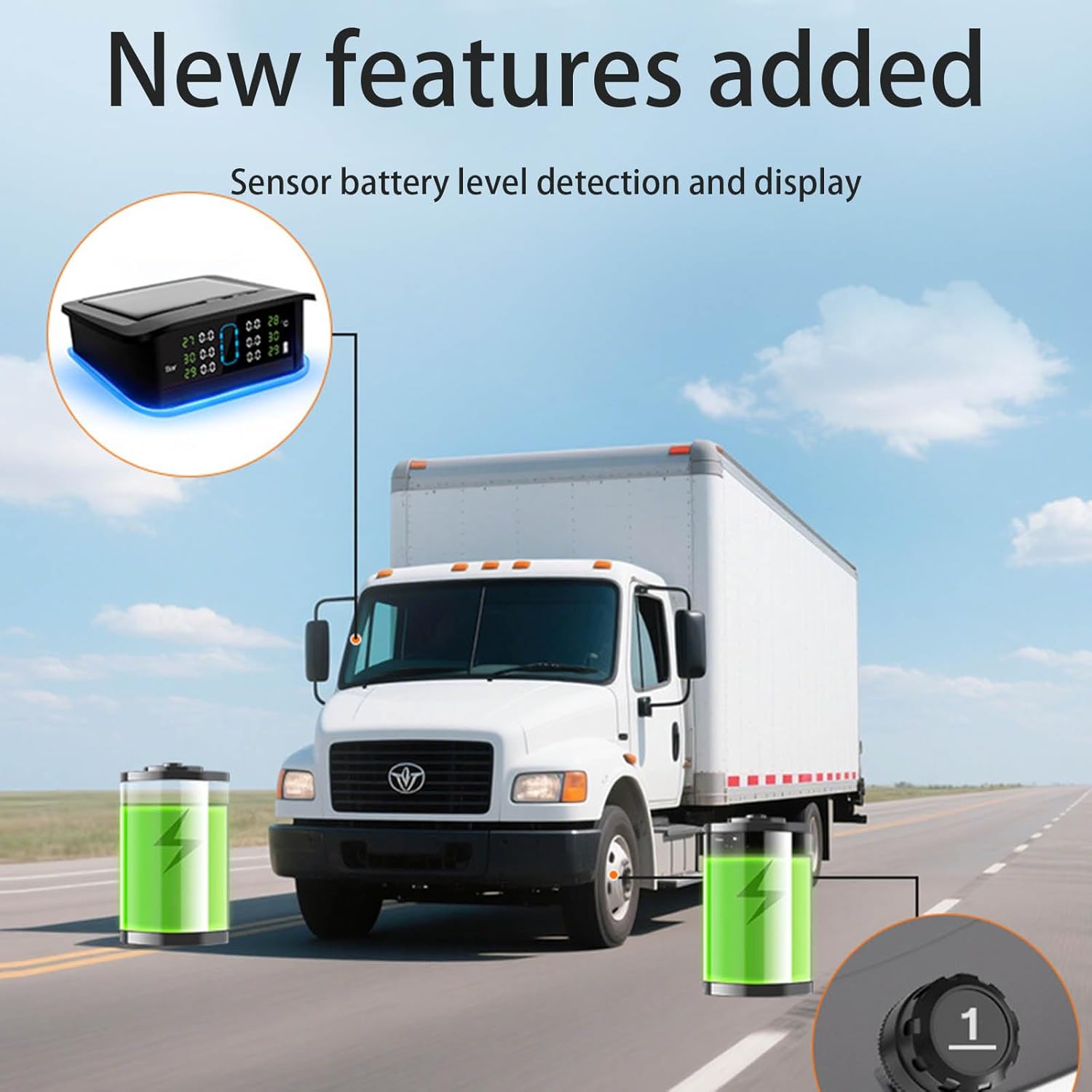 Solar TPMS For 4 & 6 Wheel Automobiles Trucks Live Pressure Observing Impermeable ABS Plan Features: The solar TPMS features live pressure observing for 4 & 6 wheel automobiles, providing immediate alerts to secure optimal tire security and execution Developed with permanent ABS housing, this external tire pressure observe is impermeable and constructed to endure harsh driving conditions for permanent use The radio solar charging structure eliminates the need for frequent battery replacements, offering continuous power and bother complimentary maintenance Easy tool complimentary installation creates this TPMS consistent automobiles, trucks, and SUVs, providing global everyone vehicle varieties The photovoltaic panel ensures efficient power conversion, while the external detectors deliver accurate pressure following for strengthened driving security Specifications: Substancemail: ABS With surrounding ligheight: Normally pale royal blue light, abnormally light trafficlight Pressure observing extent: 0 6bar 433MHz frequency extreme long transmission distance ( 30 metres away) Solar charging, USB CREATE charging 4 tire pressure and tire pressure display Practicality: Five hundred observing of tire pressure and temperature to secure driving security, suitable for remote travel and daily commuting Package Includes: 4-wheel external tire pressure monitor Note: Before using the accessory, please check if it is compatible