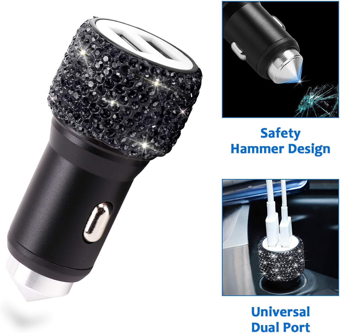 ToBeQueen Bling Car Accessories help you save money, you don't have to work hard to find all kinds of bling decor,you can easily get them here at a fair price!And No chromatic aberration! here we go! Package included: 2* Bling Car Cup Holder Insert 4* Bling Car Headrest Collars Rings 1* Bling Car Dual USB Charger 2* Bling Car Hooks 2* Bling Start Stop Button Rings 4* Bling Tire Valve Stem Caps Universal fit ,but NOT COMPATIBLE with the 2018 Tiguan SEL, 2018 Mazda 3, 2017 Cadillac XT5, BMW 325xi, Modern Tucson, Smart Forfour, 2014 Mazda CX-5 ,2018 Chevy Tahoe. Bling Car Cup Holder: ·Size:Diameter 2.75 inch, thick 0.2 inch ·High Quality Silicone Material:The material is soft, elastic, feels good and is not easily deformed ·Easy to Clean:easily wash in the water faucet and brush it to clean ·Waterproof and Dust-proof Car Headrest Collars Ring: ·Applicability:Universal fit for all the car models EXCEPT the 2018 Tiguan SEL, 2018 Mazda 3, 2017 Cadillac XT5, BMW 325xi, Modern Tucson, Smart Forfour, 2014 Mazda CX-5 ,2018 Chevy Tahoe. ·Size:Diameter(outside ):0.82 Inch,Diameter(inside ): 0.55 Inch, Height: 0.89 Inch ·Notes:please ensure its the right size for your car before you order ·Easy installation:No Modification needed Improve your vehicle's interior styling,give your car a unique LUXURY look Car usb charger: ·Applicability:compatible with iOS and Android,Can charges your iPad,iPhone,iPod,Samsung,LG,HTC,Sony,Huawei,Blackberry,Google,Nokia,Moto,MP3 Players,Digital Cameras,PDAs,Mobile Phones,etc ·Safety Hammer Design:Special stainless steel tip can help as an emergency hammer,able to break car windows or glasses in any case of emergency Car Hooks Headrest Hangers: ·Max Load 44lbs:Also is a Perfect mask hook for Car