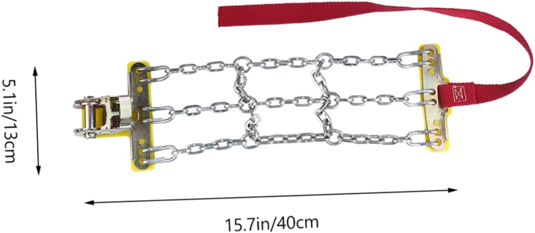 Package Include 2 tire snow chains Characteristics -NOTE: The webbing strap's color is random Car Snow Chains - Material: Steel Anti-Skid Tire Chains. - Color: Assorted Car Anti-slip Chain. - Size: About 40.00X13.00X4.00cm/15.72X5.11X1.57in Car Anti-Skid Chain. - It allows you to safely avoid snow, mud or sand, and avoid dry roads or flat ground not covered by snow, mud or sand Vehicle Anti-Skid Chain. - protect tires, avoid skidding, and provide you with more security Car Tire Traction Chain. - Whether you are trapped in sand, mud, snow, ice, climbing or other emergency situations, you can work have high performance Anti-Skid Car Tire Chains. - It is made of safe and durable materials with excellent texture and Vehicle Tire Traction Chain. - Wide application range, universal design, suitable for most vehicles, very practical Vehicle Snow Chains.Goods InformationAnti-slip Tire Chains These anti-skid snow chains work keep a all weather, even you stuck in sand, mud, snow, ice, climbing or other emergent situations, your car will get more traction in bad situation