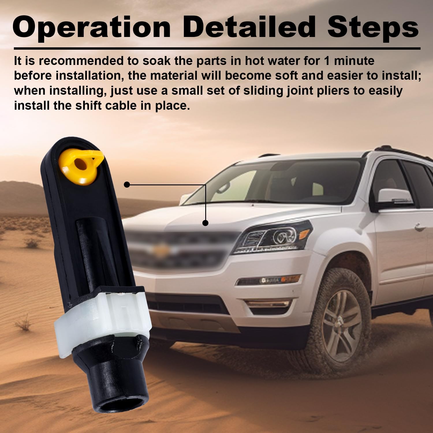 Specification: Color: yellow, white, black Material: ABS, rubber Product Size: yellow shift cable bushing: 1.27x1.42cm/0.5x0.56in White shift cable bushing: 1.27x1.35cm/0.5x0.53in Spring: 2.37cm/0.93in long Shift cable clamp: 2.2x2.27cm/0.87x0.89in Spring-loaded shifter bushings: 8.5x1.9cm/3.35x0.75in Package details: a set of transmission shifter linkage cable bushing repair kit Note: Due to manual measurement, the size and weight may have a certain error. Due to the difference between monitors, there may be a slight color difference.