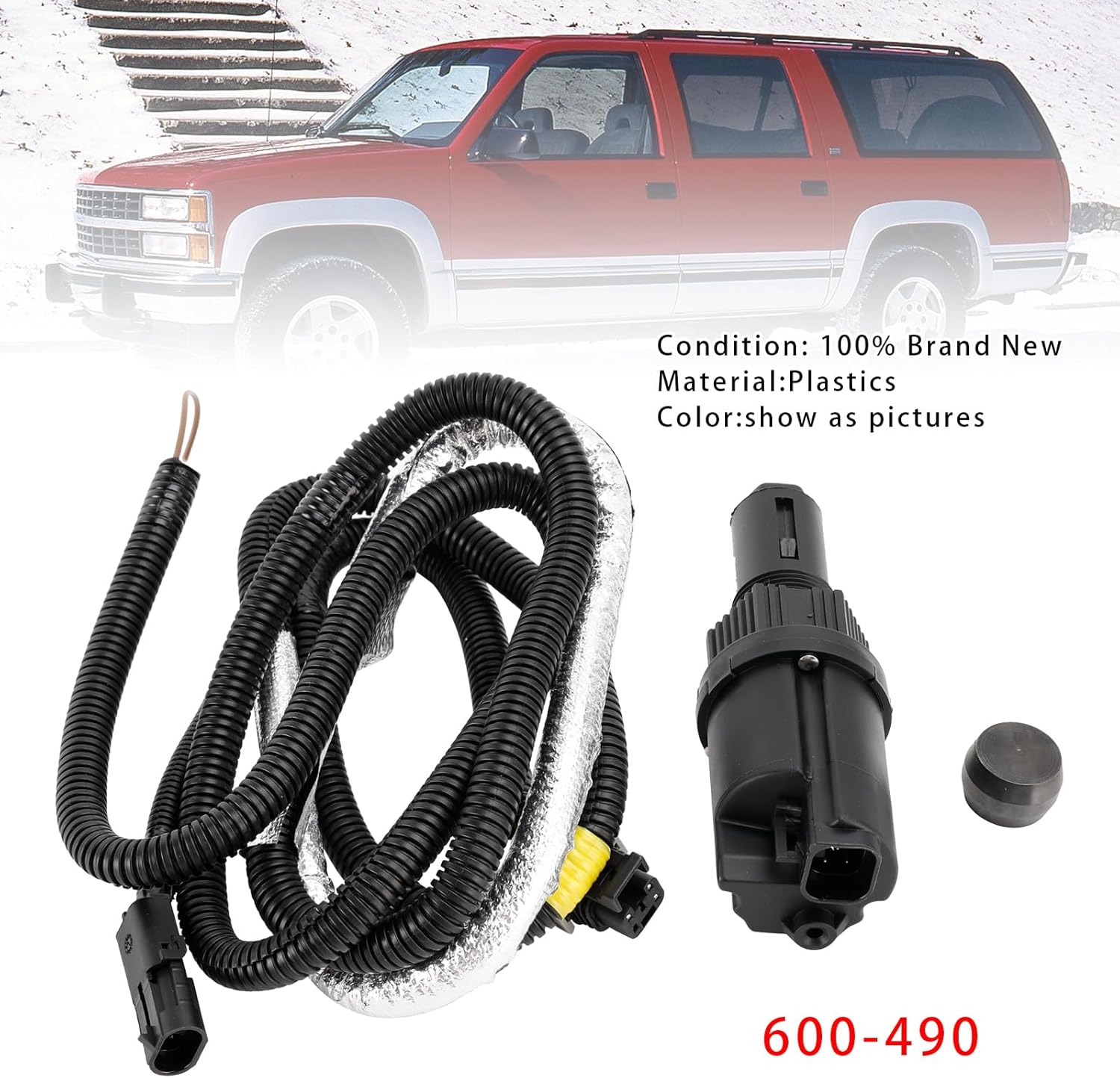 4WD Actuator 600-490Specifics:Manufacturer Part Number 600-490Type 4WD ActuatorFeatures : Durability Tested, Upgrade Aluminum MaterialFitment Type Direct ReplacementFitment For Chevrolet Blazer 1992-1994For Chevrolet K1500 Suburban 1992-1996For Chevrolet K1500 1988-1996 For Chevrolet K2500 Suburban 1992-1996For Chevrolet K2500 1988-996For Chevrolet K3500 1988-1996For Chevrolet Tahoe 1995-1996For GMC K1500 Suburban 1992-1996For GMC K1500 1988, 1989-1996For GMC K2500 Suburban 1992-1996For GMC K2500 1988-1996For GMC K3500 1988-1996For GMC Yukon 1992-1996Package Include:1 4WD Actuator, 1 Wiring HarnessFeature 1 According to the original factory specifications,perfect match for the original car.2 Own different test machines to design exact accurate parameter for our products.All items were tested for performance.3 Made by high quality material, lightweight, anti-rust, colorfast and durable.4 Aftermarket product with premium quality.5 Stable performance, high reliability,suitable for replacing your broken one.