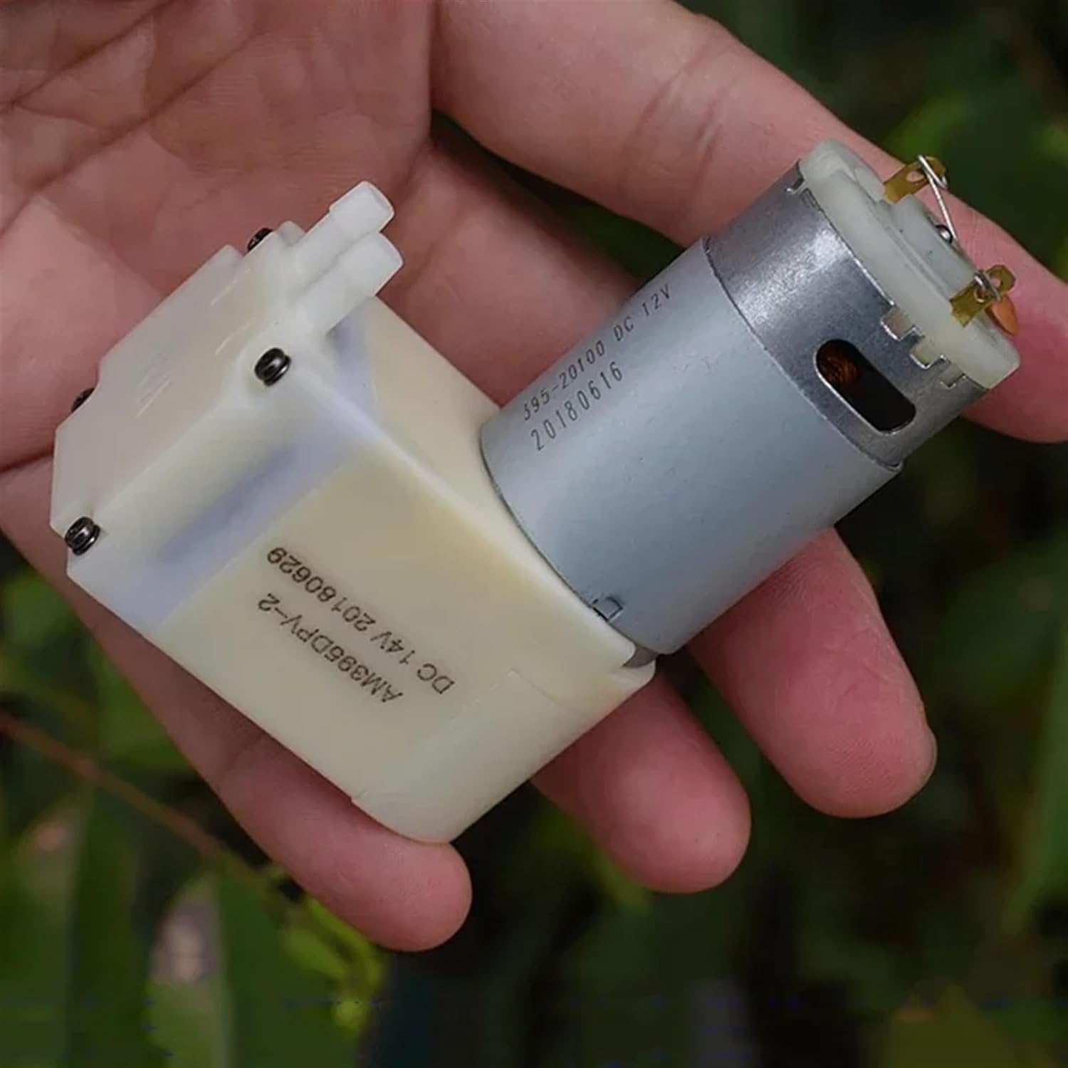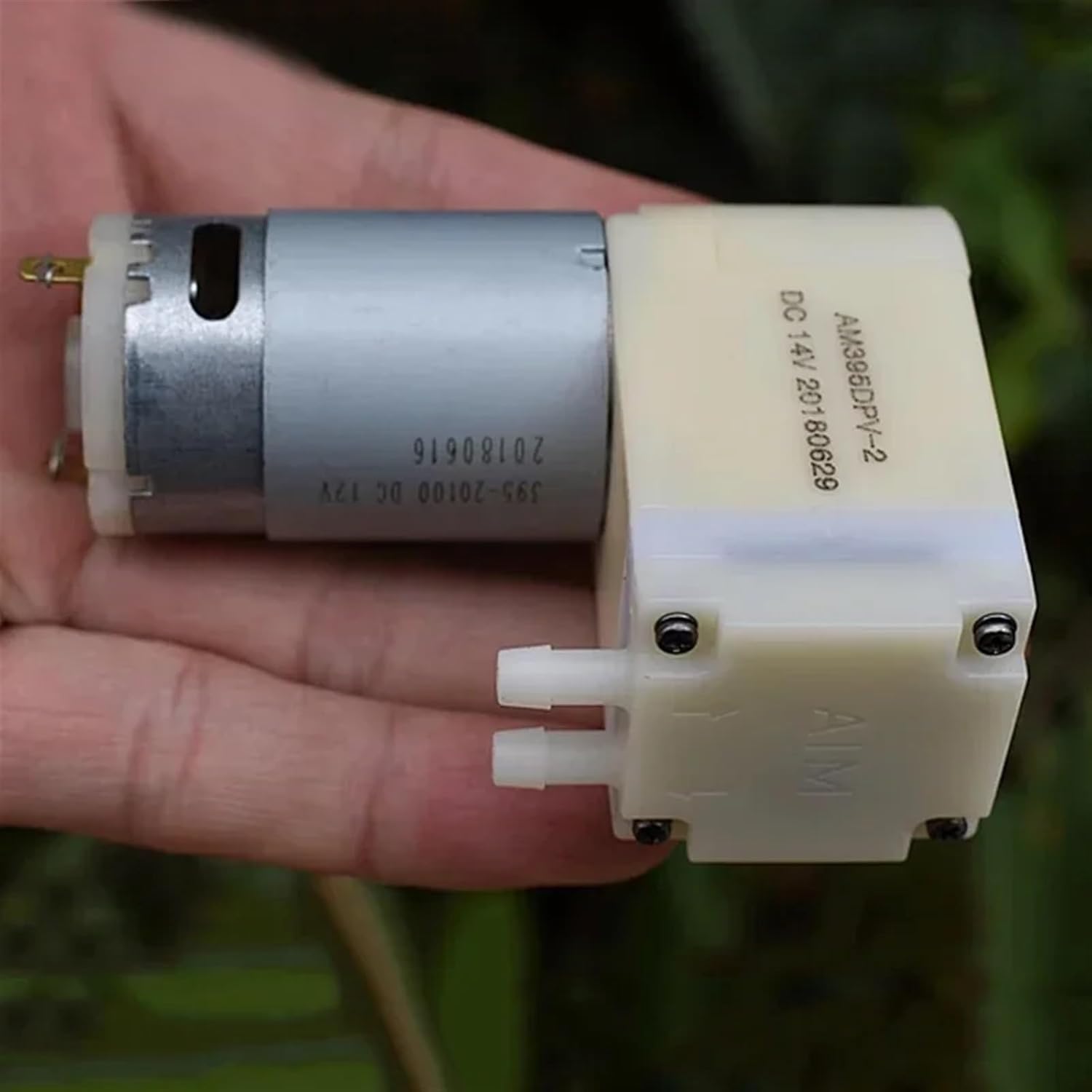 Vacuum PumpSpecification:1.Model number: AM395DPV-2 2.Motor: 395-20100 3.Type: Diaphragm Pump/ Vacum Pump 4.Air inlet/outlet diameter: 4.8mm 5.Weight: 126g 6.Suitable voltage: DC 12V-15V 7.Test data: Voltage:12V No-load current:0.52A Voltage:14V No-load current:0.58A Voltage:15V No-load current:0.61A=========================Package List:Mini Pump x 1PCS==========Application : MeteringTheory : Vacuum PumpStructure : Diaphragm PumpModel Number : Mini 395 Motor Vacuum Air PumpPower : ElectricPressure : High PressureUsage : Vacuum PumpFuel : ElectricOrigin : Model number : AM395DPV-2Motor : 395-20100Air inlet/outlet diameter : 4.8mmSuitable voltage : DC 12V-15VWeight : 126g