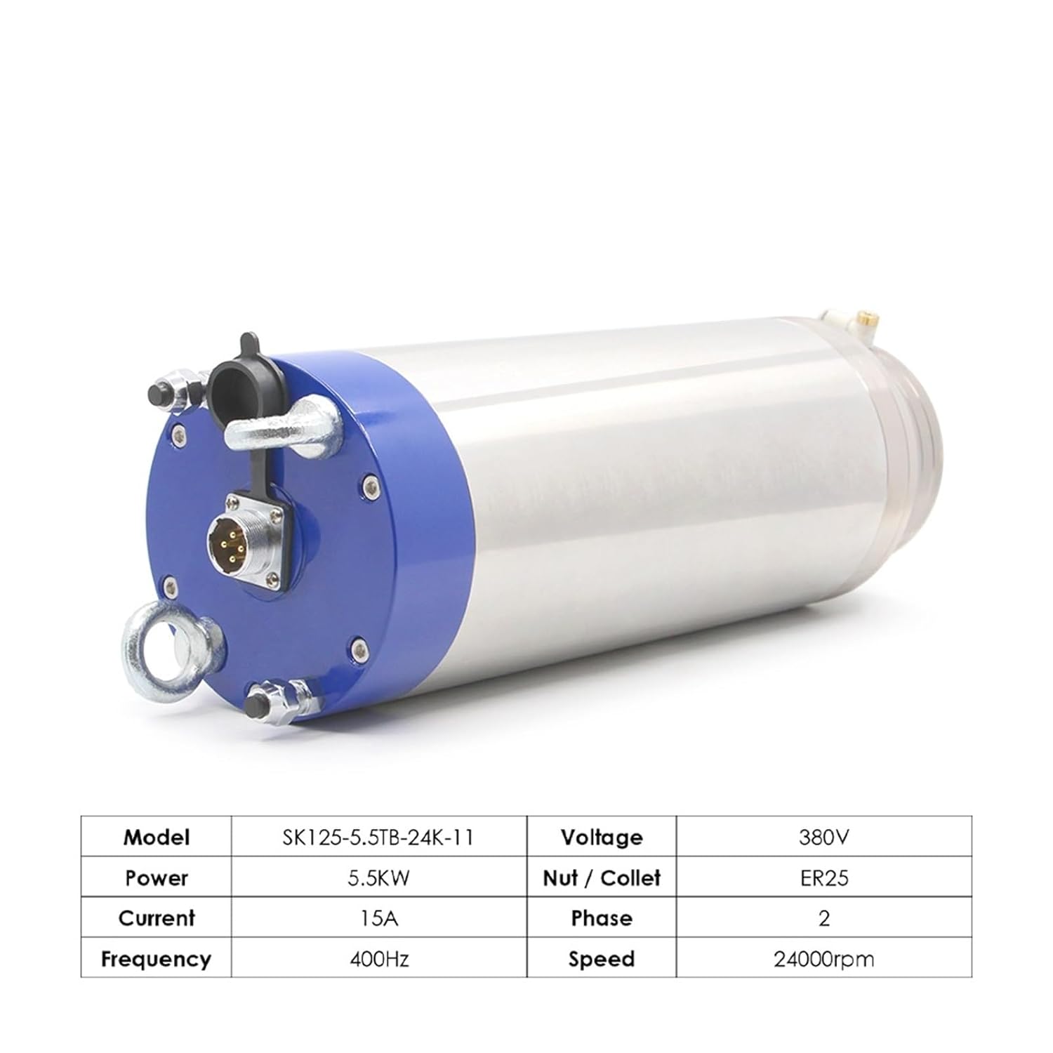 Engine Radiator Cooling Fan Motor1 pcs & 220380v AC 55kw ER25 Stone Working Water Cooled Motor Gas Nozzle Engraving Milling Grinding 4pcs ceramic ball bearingsThere are 4 labyrinth seal in the front section of the spindlePrevents lubricant leakage from bearings and intrusion of harmful impurities (dust, moisture, corrosive gases) and bearing seals under high-speed conditions.The have gas nozzle, so you can connect it to air pump, and the the dust difficult go into , good for stone working.Size:125x351.6mm(Middle body diameter:125mmxLength:308.6mm)Material:304 stainless steel jacket,iron shell,water jacket is pressure cast aluminum tubes, high temperature copper coilSpeed Ways:through the inverter output voltage and adjust the operating frequency can be achieved 0-24000 steplessCooling:water cooling modePower Interface:Optional KC20 waterproof air , there are marked 1234,123 were connected to the inverter power supply (U, V, W), 4 connected inverter ground.Power:5.5KWVoltage:220v/380VCurrent:22A/15AFrequency:400HzSpeed:12000-24000rpmRunout Off:0.01mmDiameter(mm):vv125Bearing Type:4pcs ceramic ball bearingsCollet: ER25Clipknifediameter:1-20mm,3.175mm,6.35mm,12.7mmWater Cooling ER25 collet chunkGrease LubricationMain Application:Stone WorkingUnique design, the air nozzle can be connected to the air pump to prevent dust from entering the , protect the bearing of the , and improve the use time of the .4 pcs ceramic ball bearing, extend the using life.Iron casing, strong rigidity, suitable for products with high hardnessHigh precision,runout off less than 0.01mm.Coaxial degree less than 0.0025mm.1. Our Ceramic ball bearings use 4 pcs ceramic ball bearings.2. Ceramic ball bearings are to high temperatures and low heat, usually 3-5 degrees lower than steel ball bearings during using.3. Ceramic ball bearings have low friction, low no