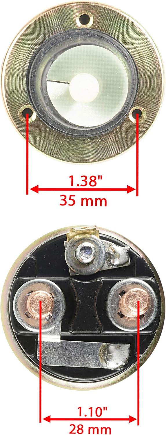 Compatible with John Deere modelsF620 Kohler 20HP Engine AllF680 Kohler 20HP Engine AllF687 Kohler 23HP Engine AllAercore 800 Greens AeratorAercore 800 Aerator Kohler 18HP Engine AllAercore 800 Aerator Kohler 25HP Engine AllMowers-Z-TrakF687 Kohler 23HP Engine AllM653 Kohler 23HP Engine All M655 Kohler 25HP Engine AllM665 Kohler 25HP Engine AllZ510A Kohler 22HP Engine AllZ520A Kohler 25HP Engine AllTractors-LawnG100 Kohler 25HP Engine AllG110 Kohler 25HP Engine AllL130 Kohler 23HP Engine AllLX266 Kohler 16HP Engine AllSabre 1948GV Kohler 19.9HP Engine AllSabre 1948HV Kohler 19.9HP Engine AllSabre 2148HV Kohler 21HP Engine AllSabre 2354HV Kohler 23HP Engine All Sabre 2554HV Kohler 25HP Engine AllPart Numbers:25-435-06-S25-435-05-SMeasurements & DimesionsTerminal Distance: 28mmMount Hole Spacing: 35mmTotal Height: 129mmNOTE:Solenoid For Delco version starter12V