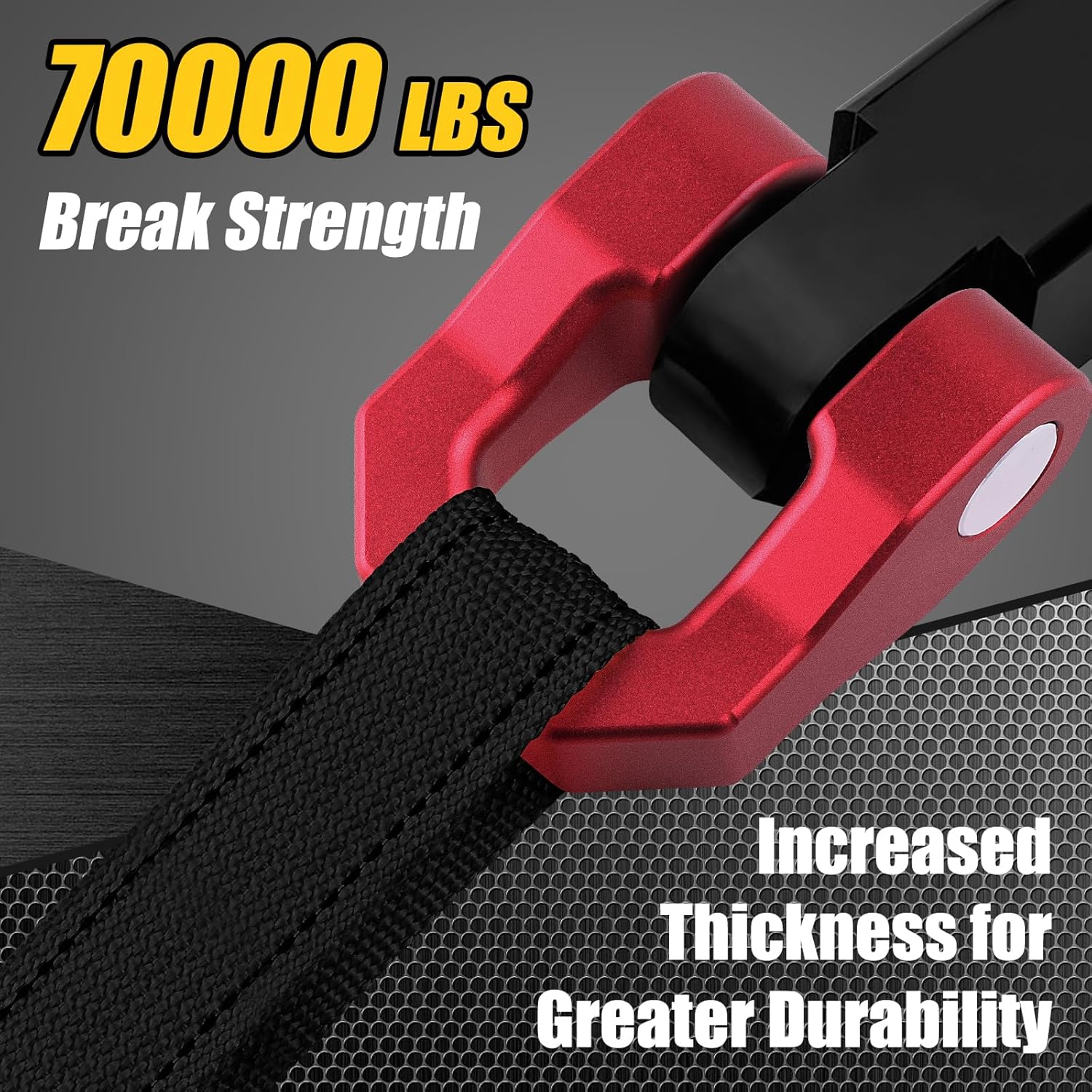 NUOVEPE 3/4" D-Ring Shackle - Forged from aerospace aluminum, it laughs at 70,000 lbs loads—perfect for yanking trucks, SUVs, or Jeeps out of mud, snow, or trails! Sandblasted to resist rust & scratches, it’s built dirty. Fits ANY 3/4" strap or winch + locks down with a theft-proof bolt. Quick install.Specifications:Color: RedSize: 3.1 x 1.5 x 3.8 inchMaterial: Aluminum AlloyBreaking Strength: 70000 LBSSurface Finishing: SandblastedPackage includes: 2* D-ring Shackle1* Allen Key