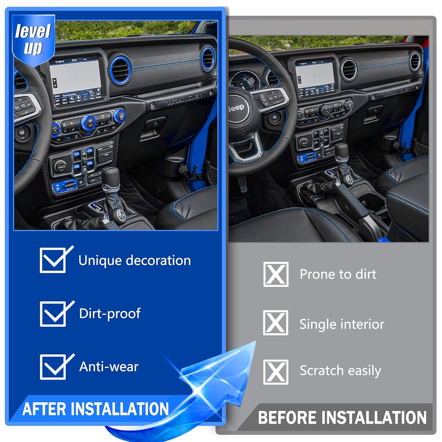 SENSHINE AC Knob Cover Vent Outlet Trim Ring for Jeep Wrangler JL JLU Accessories 2018-2023 Gladiator JT 2020-2023 Window Switch Button Cover Volume Radio Headlight Switch Knob Covers, 12 Pcs (Blue)