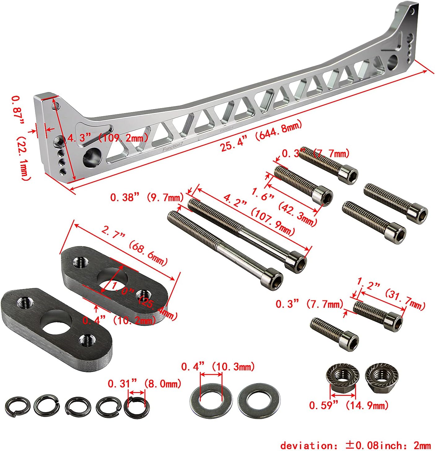 Title: Billet Aluminum Rear Subframe Brace Mount for 1996-2000 Honda Civic EK EJ APPLICATION:For 96-00 Honda Civic (All models)For 99-00 Honda Civic Si (US model only)For 99-00 Honda Civic SiR (Canadian model only)For 96-00 Acura EL (Canada)Vehicle compatibility charts are for REFERENCE ONLY. Check your vehicle with OEM below to match your needs.Description:100% quality assurance tested, more responsive, less expensive, easier to install.The Rear Subframe Brace kit for the 96-00 Civic provide reinforces the rear crossmember of the chassis providing improved handling and steering response.Tested and refined on the racetrack to improve the handling of the Honda Civic.A standard hardware kit is included with the rear brace, and includes reinforcement plates to prevent frame tearout, which is a common occurence on the EK Civic chassis when used with large aftermarket sway bars.NoteNo installation guides are included, we highly recommend to seek professional installation. Any damage during installation will not be refunded.