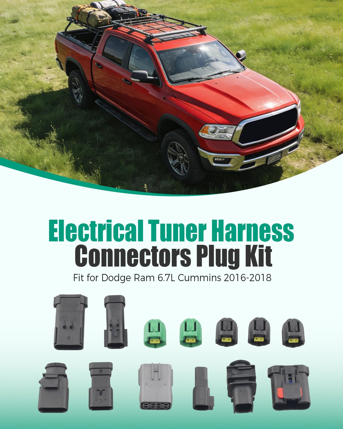 Compatible with: Fit for Dodge Ram 6.7L Cummins 2016 2017 2018Product specifications: Color: Black, greenMaterial: High-quality plasticProduct includes: Electrical tuner harness connectors plug*13Installation method: Direct installationNoticeCheck the size in advance in case of mismatching For any reason, if you are not satisfied with your purchase, contact us directly