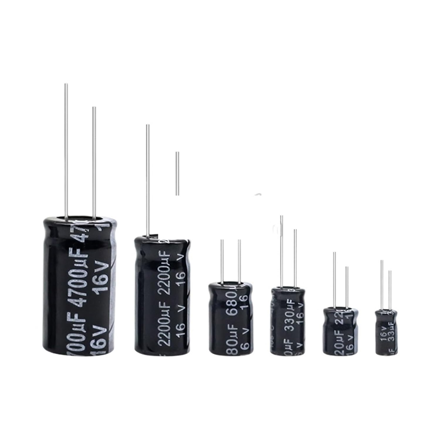 CapacitorsColor : blackStructure : Fixed CapacitorOperating Temperature : 105CRated Voltage : 10V/16VPackage Type : Through HoleApplication : PurposeModel Number : Aluminum Electrolytic capacitorType : Aluminum Electrolytic Capacitor