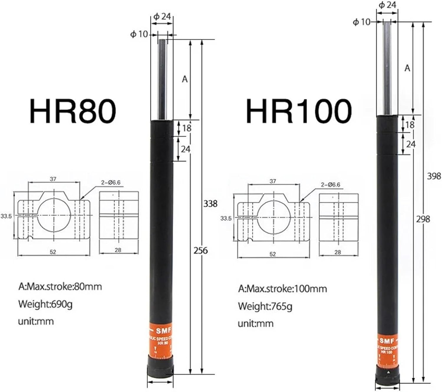 Pressure DampersType : OtherModel Number : HR30/SR30 Color : BlackType : Oil pressure bufferMAX.LOAD : 15-350kg/fTemeperature : -10 To 80CHR30 Weight : 495gMAX.STROKE : 30mmHR60 Weight : 610gHR80 Weight : 610gHR100 Weight : 765g