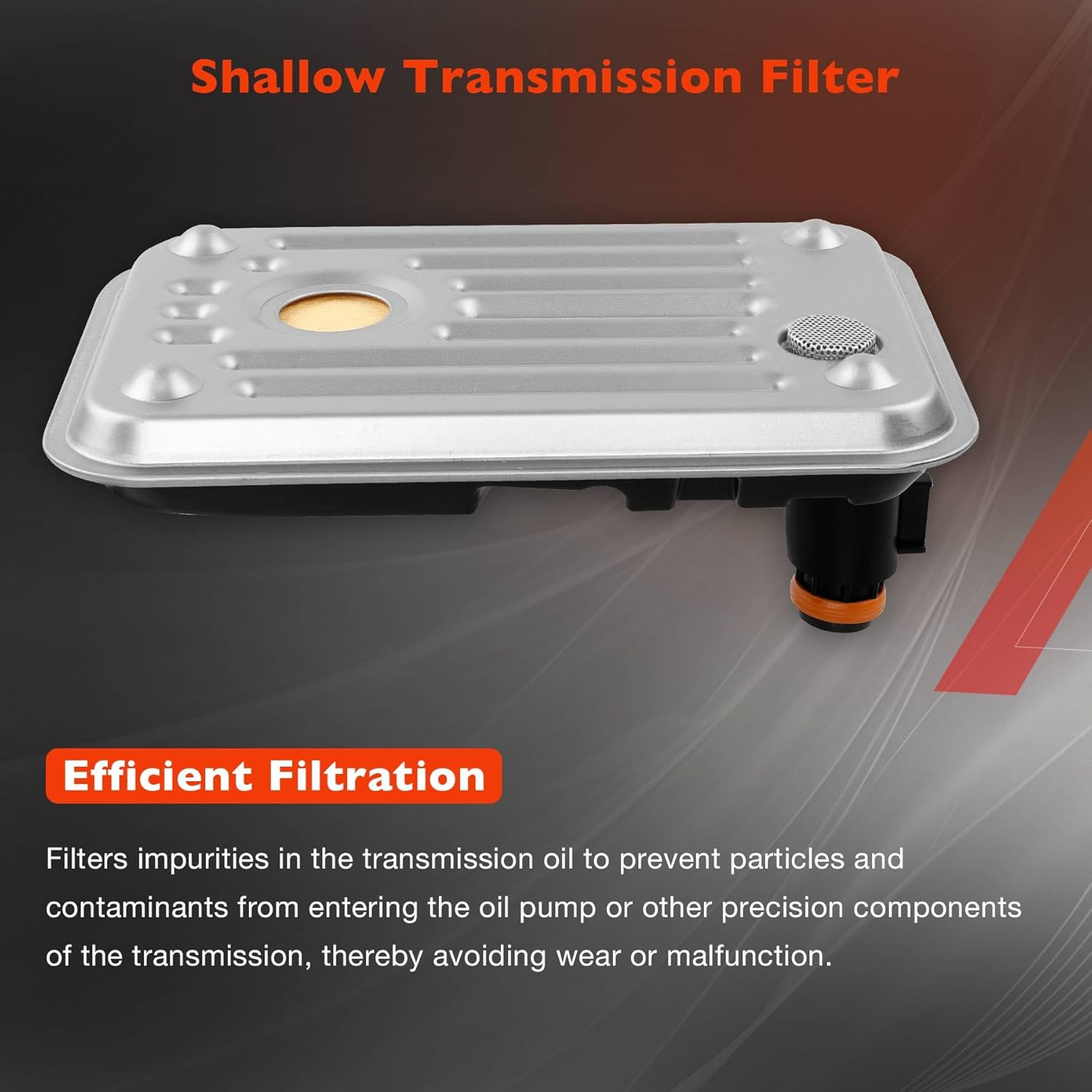 Easy to install and designed for Shallow Pan transmissions, its efficient filtering function can effectively remove impurities and particles from the transmission oil, protect the gearbox from pollution and damage, ensure smooth shifting, and extend the service life of the gearbox. Using high-quality and durable materials, this filter can maintain excellent performance even in high temperatures and harsh environments, ensuring stable operation of the vehicle under various driving conditions. Compatible with: 2001-2010 Chevrolet/GMC 2500/3500 HD 6.6L Duramax with Allison 1000 2000 Transmission Replaces Part Numbers: 29539579 29537965 Package Include: 1* Internal Shallow 1* Spin-On Filter At ATRACYPART, we take pride in the quality of our products and in your satisfaction. If you have any problems, do not hesitate to contact us.