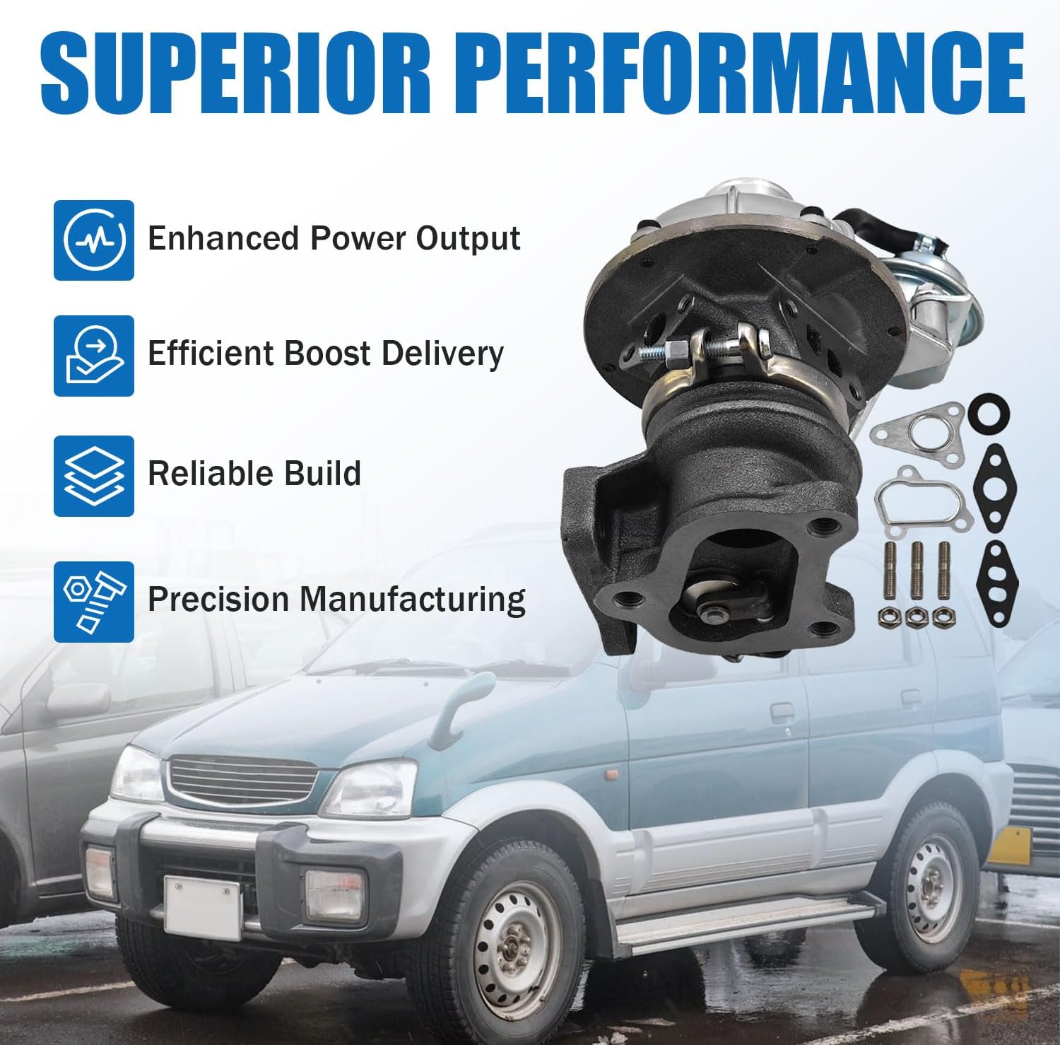 | Model | 17200-97202 turbocharger fit for Briggs & Stratton EF-RL L500 Engine fit for Daihatsu L950S L960S 4WD 1994-1998 |