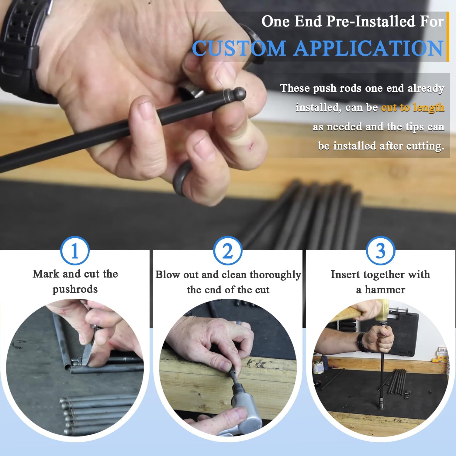 Push Rods, 3/8" 11.60" Long Chromoly Cut to Length, Compatible with Air-cooled Vw Engines Set Of 8