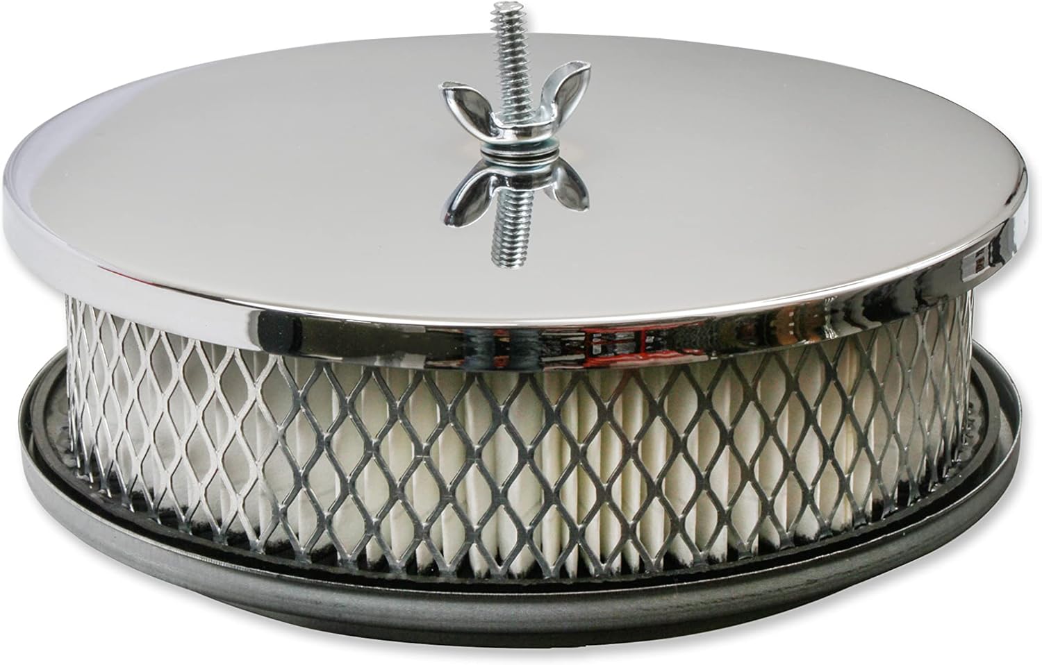 Mr. Gasket Easy-Flow Air Cleaners give you that show-car look for a bargain price. Designed to fit single 2-, 3-, and 4-barrel carburetors with 5-1/8-inch necks, this 1.5-inch tall, high-CFM air cleaner features a 6.5-inch zinc-plated-steel base and a durable chrome-finished top cover that encloses a replaceable flame-retardant paper element and comes complete with a hold-down stud and a wing nut.