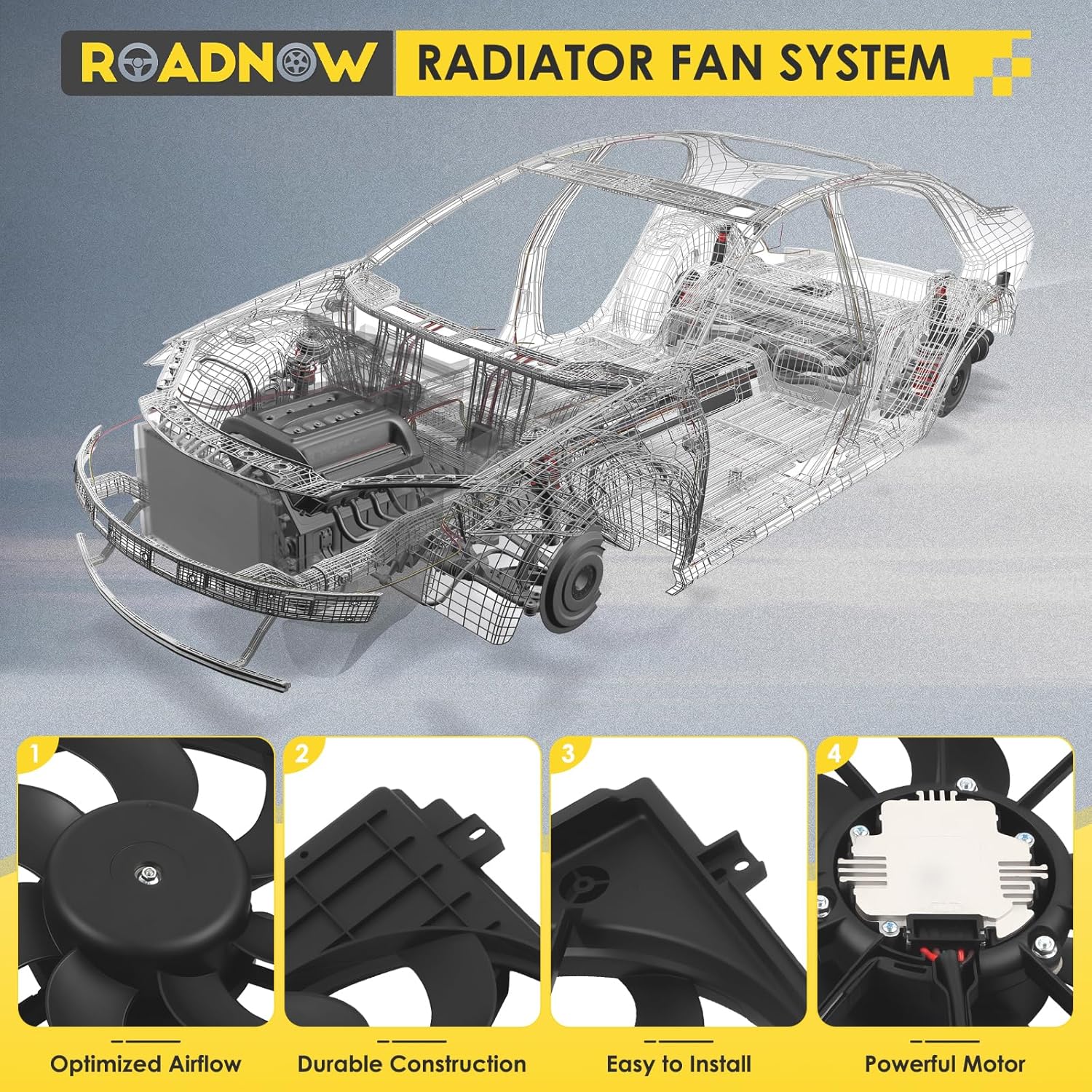 - 【Quiet & Durable】 RoadNow radiator cooling fan assembly features precision-balanced blades and a brushless motor design, effectively reducing operational noise and vibration. Each fan undergoes rigorous multi-stage testing before shipment—including electrical function tests, vibration endurance tests, and airflow performance verification—ensuring it meets or exceeds OEM specifications for cooling efficiency. Built to perform reliably even under extreme conditions, it delivers lasting protection throughout your drives