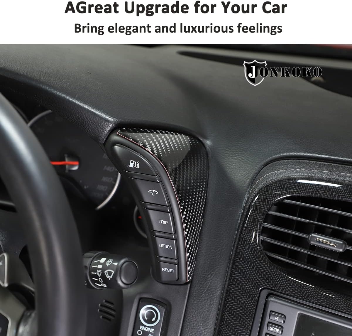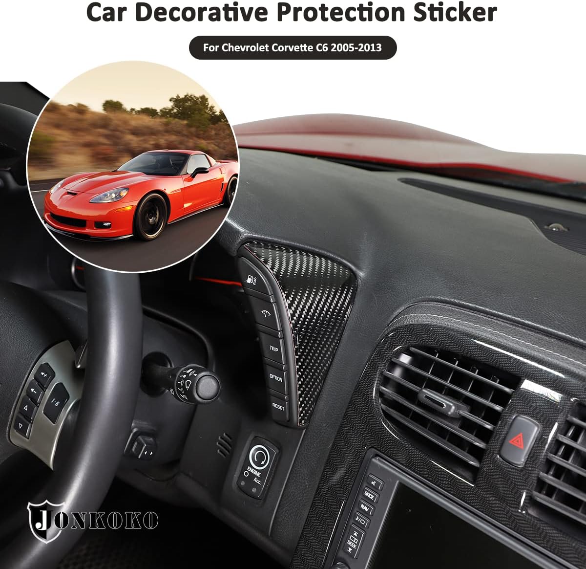 Features - Material: Made of High Quality Soft Carbon Fiber - Paint Baking and UV Treated on surface - Easy installation with double-sided tape - Color:Black/Red - Please confirm your car model is as same as the picture before submitting your order - NOTE- In case it fall off for some car models, just add some tape and put the cover back on,then they will work perfectly Description Item type: Auto Interior accessories Installation method: 1) Clean the surface, keep dry and clean. 2) Paste and install. (there is 3M auto adhesive glue in the trim back) 3) Please press hard especially on the edges at least 2 minutes after installing. 4) Using hair dryer (hot air blowing) in cold weather. 5) Please keep away from water and keep dry after been installed within 72 hours/3 days. Package include: 2Pcs Car Instrument Sides Decorative Stickers 3Pcs Instrument Panel Button Sticker