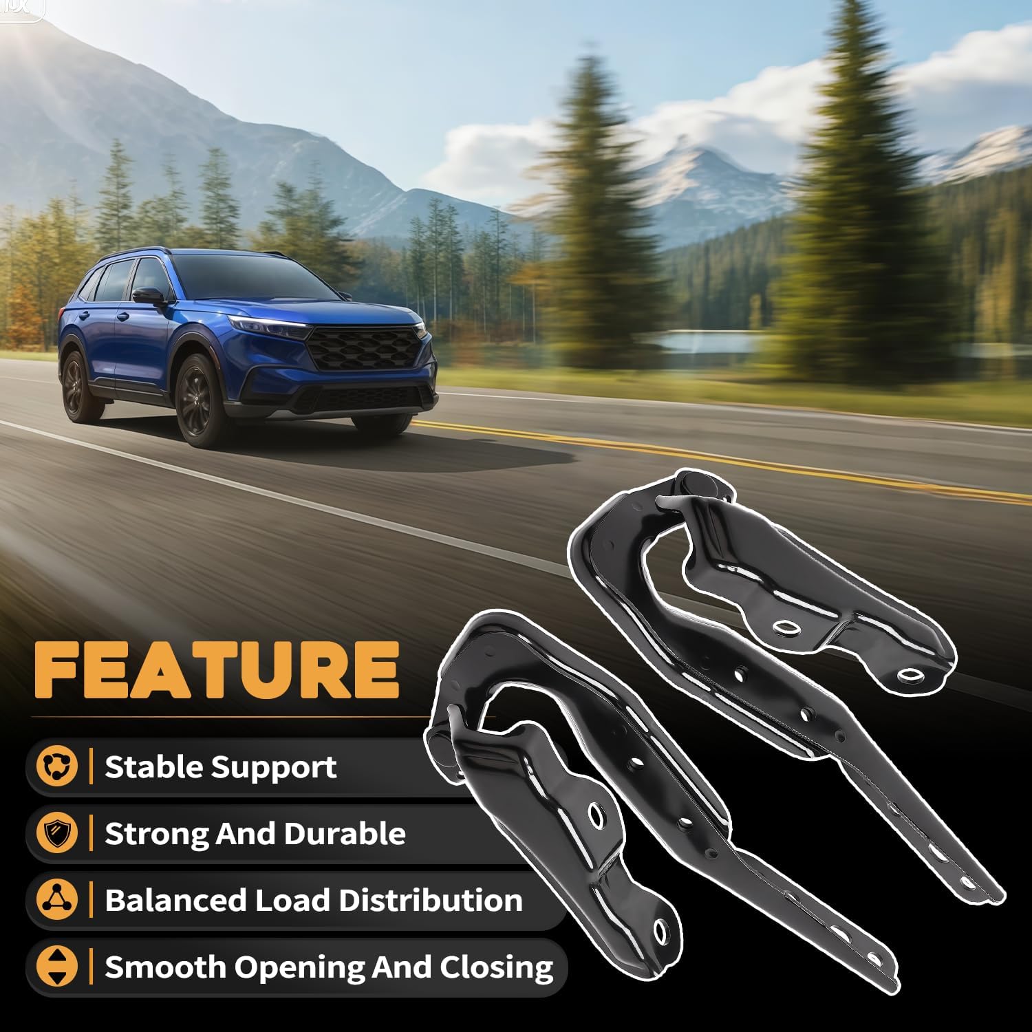 Part Name: Hood Hinges Brand: GaimeilaLocation: FrontProduct Material: SteelColor: BlackInclude Packing: 2 × Hood Hinges( LH+RH )Warranty: 1 YearNote: Please check on your car model details and exact OE number to confirm if this item is fitted.Replace Part Number: HO1236167(LH) HO1236168(RH)601703A0A00ZZ(LH) 601203A0A00ZZ(RH)Fitment: Fit For Honda CR-V 2023Fit For Honda CR-V 2024Fit For Honda CR-V 2025Advantage:Enhanced Safety Support: Provides firm and reliable hood support, preventing accidental lifting while driving for improved safety. Smooth & Stable Operation: Precision-engineered pivots deliver quiet, smooth, and stable motion for effortless opening and closing.Perfect Hood Alignment: Maintains accurate hood positioning and seamless body alignment for a clean, professional vehicle appearance.Corrosion-Resistant Coating: Protected with a durable anti-rust finish that resists moisture, oxidation, and road salt for extended lifespan.Long-Lasting Performance: Tested through thousands of open-close cycles without loosening or wear, ensuring consistent reliability over time.Heavy-Duty Steel Build: Made from premium heavy-duty steel, ensuring superior strength, stability, and long-lasting durability under frequent use.