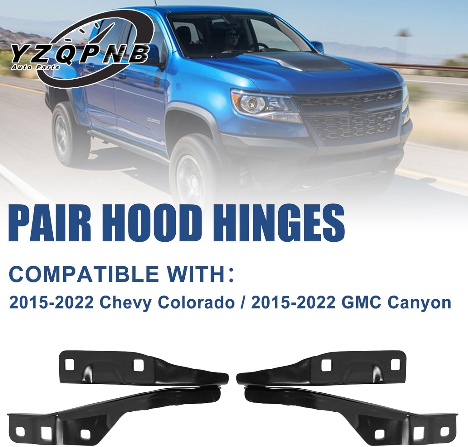 Hood Hinges Compatible with Chevrolet Colorado 2015-2022 GMC Canyon 2015-2022Replaces Number: 23303047 23303048 GM1236215 GM1236214Package: 1 * Left side Hood Hinge 1 * Right side Hood Hinge
